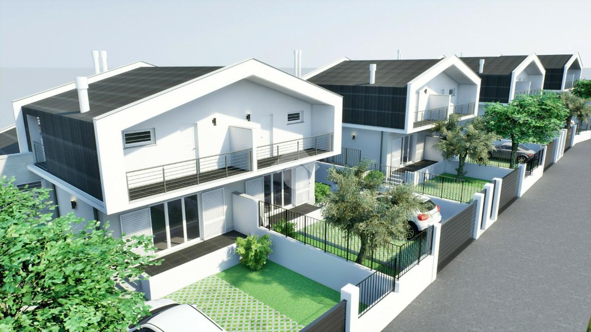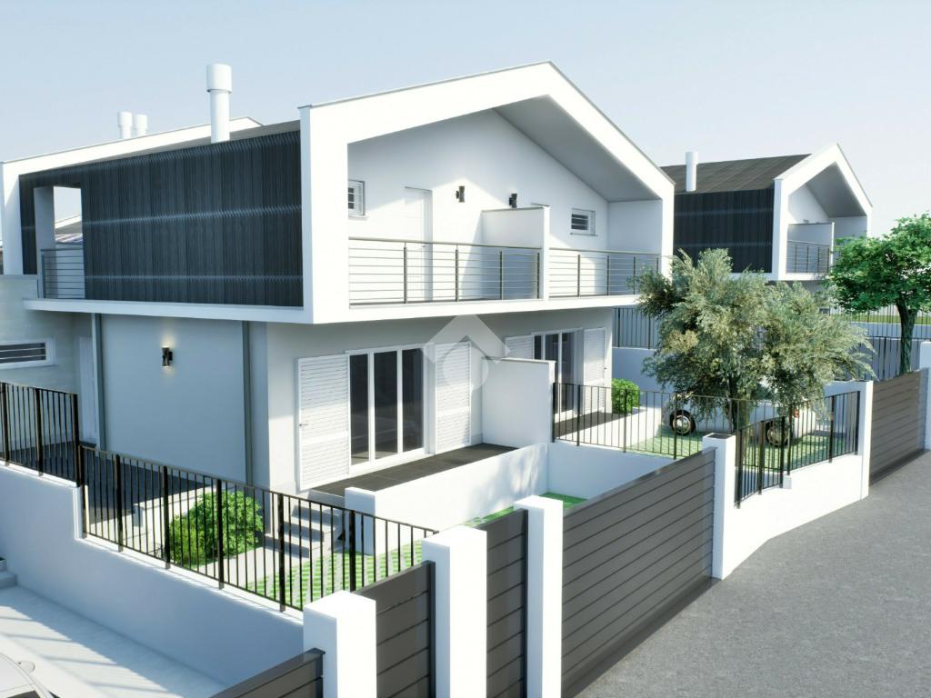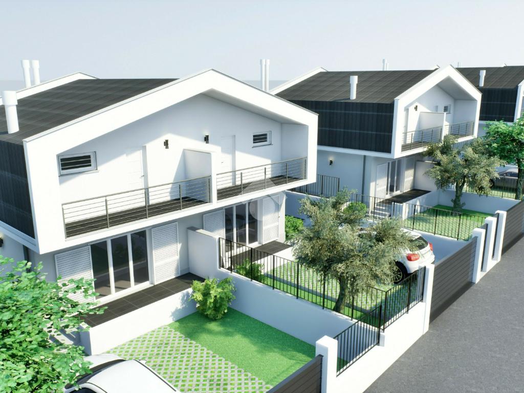 Benvenuti nella prestigiosa zona di Castelverde, dove vi presentiamo un'opportunità unica nel suo genere: moderne ville bifamiliari in Classe A4 nZEB, simbolo di eleganza, comfort e sostenibilità, situate in un esclusivo complesso residenziale di 18 ville. Questi gioielli architettonici si sviluppano su due livelli fuori terra, offrendo uno spazio abitativo ben progettato e rifinito nei minimi dettagli. Al piano terra, la soluzione comprende un soggiorno con angolo cottura, due camere matrimoniali e un bagno. Al piano superiore, troviamo tre stanze e un locale lavatoio. La villa è completata da un ampio giardino arricchito da un portico, ideale per momenti di relax e convivialità all'aperto. La solidità delle strutture in cemento armato e le murature termiche garantiscono non solo una resistenza duratura, ma anche un isolamento termico di alta qualità. Le finestre di prima classe aggiungono un tocco di modernità all'estetica della villa, ma contribuiscono anche in modo significativo all'efficienza energetica complessiva, assicurando un ambiente interno confortevole e ben illuminato. Il sistema di riscaldamento e raffreddamento della villa, avviene ad aria mediante una pompa di calore, offrendo un comfort termico ineguagliabile in ogni angolo della casa. Inoltre, il pannello fotovoltaico installato sulla copertura contribuisce alla riduzione delle spese energetiche, integrando perfettamente la moderna tecnologia con il rispetto per l'ambiente, sottolineando l'impegno per la sostenibilità e l'efficienza energetica. Questa caratteristica non solo riduce i costi energetici a lungo termine per i residenti, ma dimostra anche un'attenzione particolare alla riduzione dell'impatto ambientale. Le soluzioni sono inoltre dotate di ventilazione meccanica controllata, che crea un ricircolo dell'aria costante, evitando muffe e condensa all'interno dell'abitazione. Il comfort abitativo e l'attenzione ai dettagli si estendono anche all'area esterna, con un comodo parcheggio interno che aggiunge praticità e sicurezza. In sintesi, queste ville bifamiliari rappresentano l'apice dell'abitare contemporaneo a Castelverde, offrendo uno stile di vita lussuoso, sostenibile e all'avanguardia. Non solo un'abitazione, ma una dimora che fonde armoniosamente l'estetica moderna con le ultime innovazioni tecnologiche per offrire una residenza unica e senza compromessi. Le soluzioni in Classe A4 nZEB, ovvero edifici energia quasi zero, uno standard ad alta efficienza che mira a minimizzare il fabbisogno energetico degli immobili, offrendo la possibilità di accedere ai mutui green, facilitando l'acquisto di queste abitazioni eco-sostenibili.