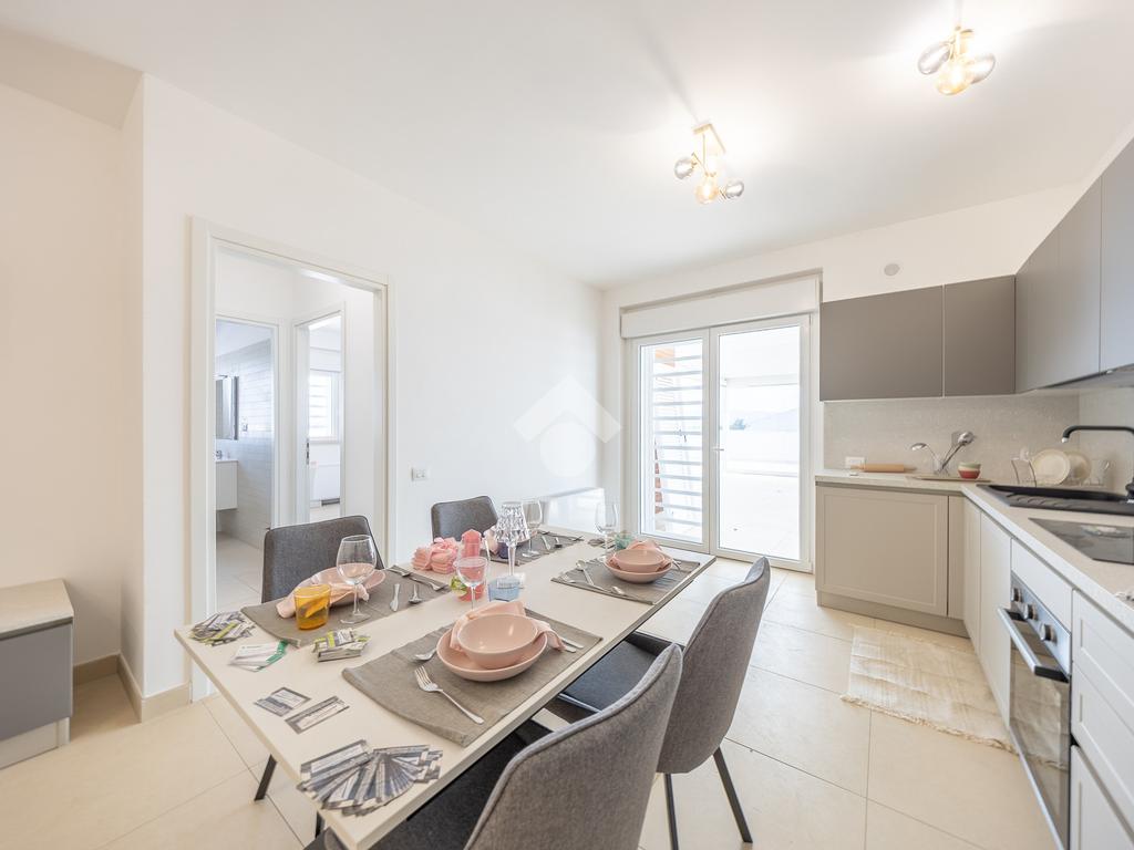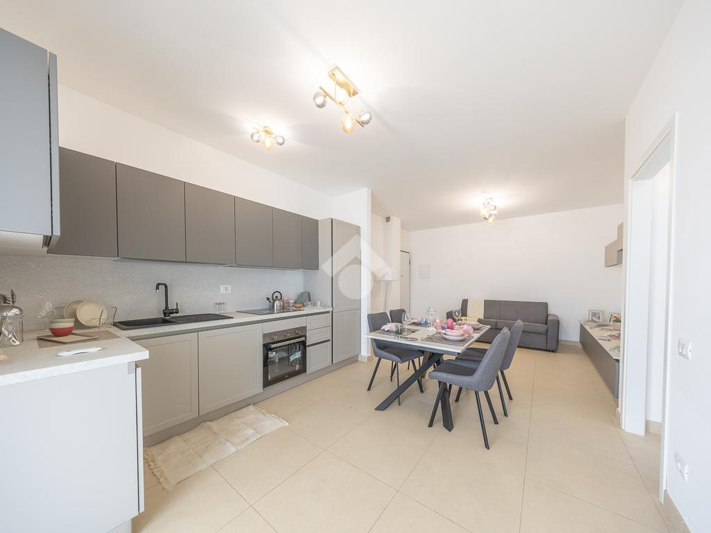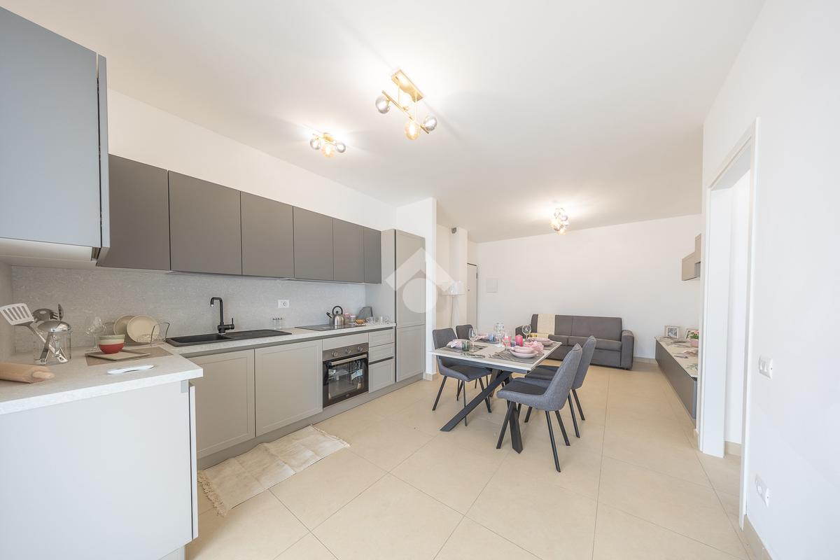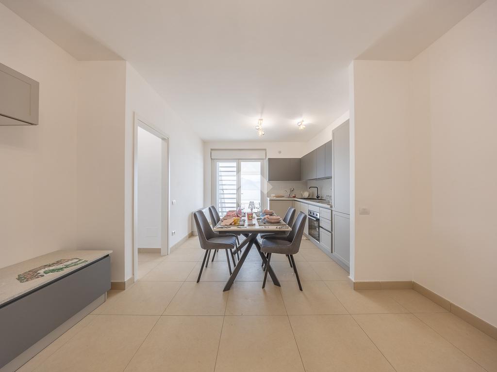 L'ingresso svela un luminoso salone, abbracciato dall'angolo cottura che invita a condividere piacevoli momenti conviviali e culinari mentre le finestre ampie permettono alla luce naturale di permeare gli spazi.