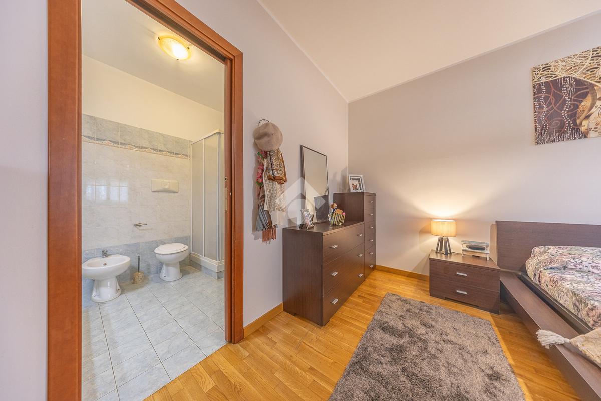 La zona notte è composta da una camera da letto matrimoniale di generose dimensioni, pensata per offrire comfort e tranquillità. A completare la soluzione, un bagno moderno, rifinito con materiali di qualità.