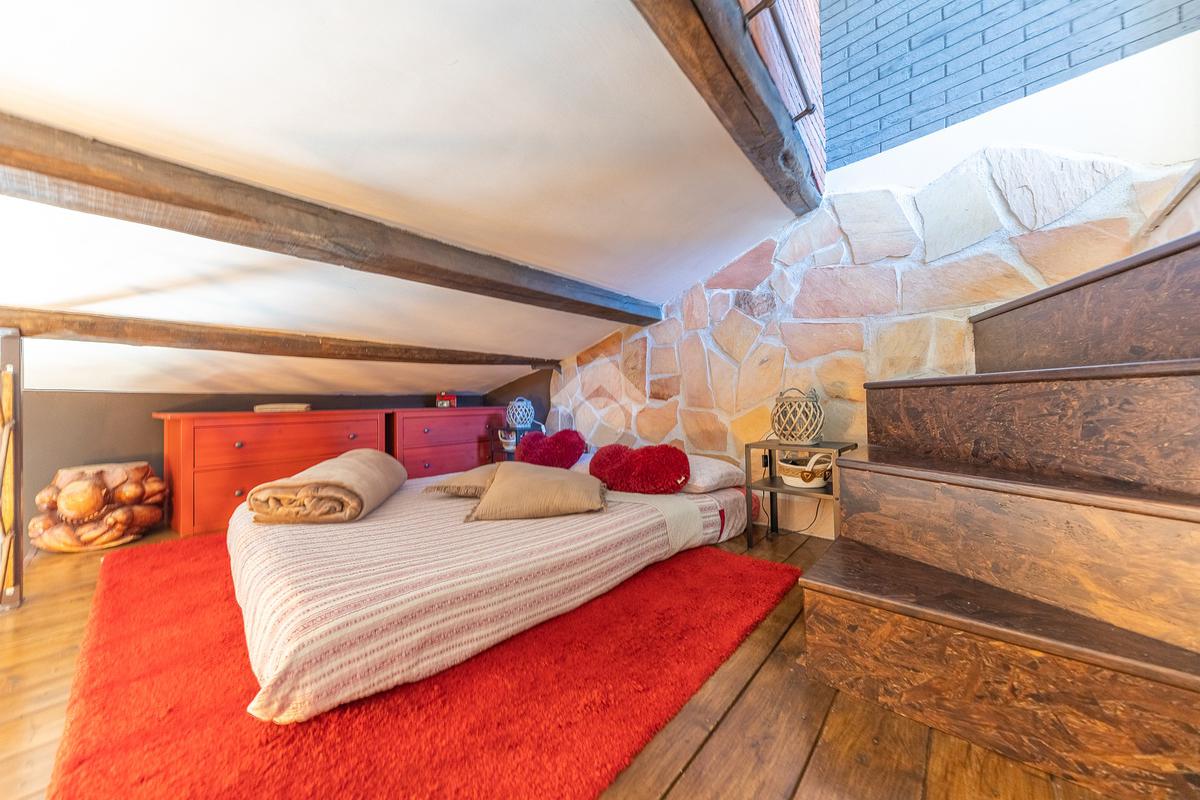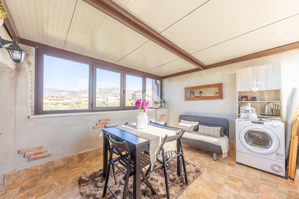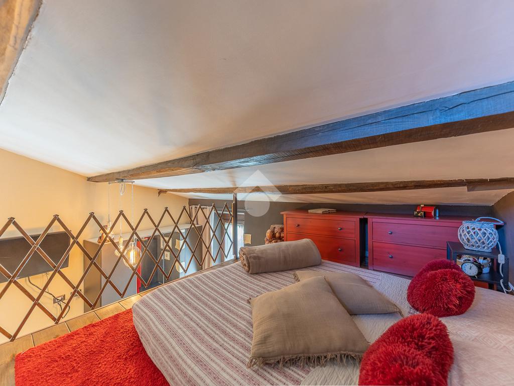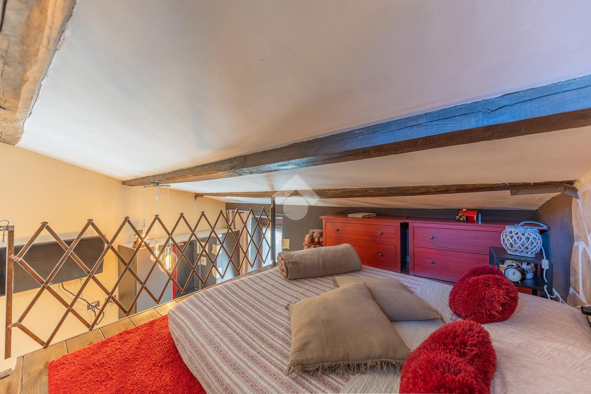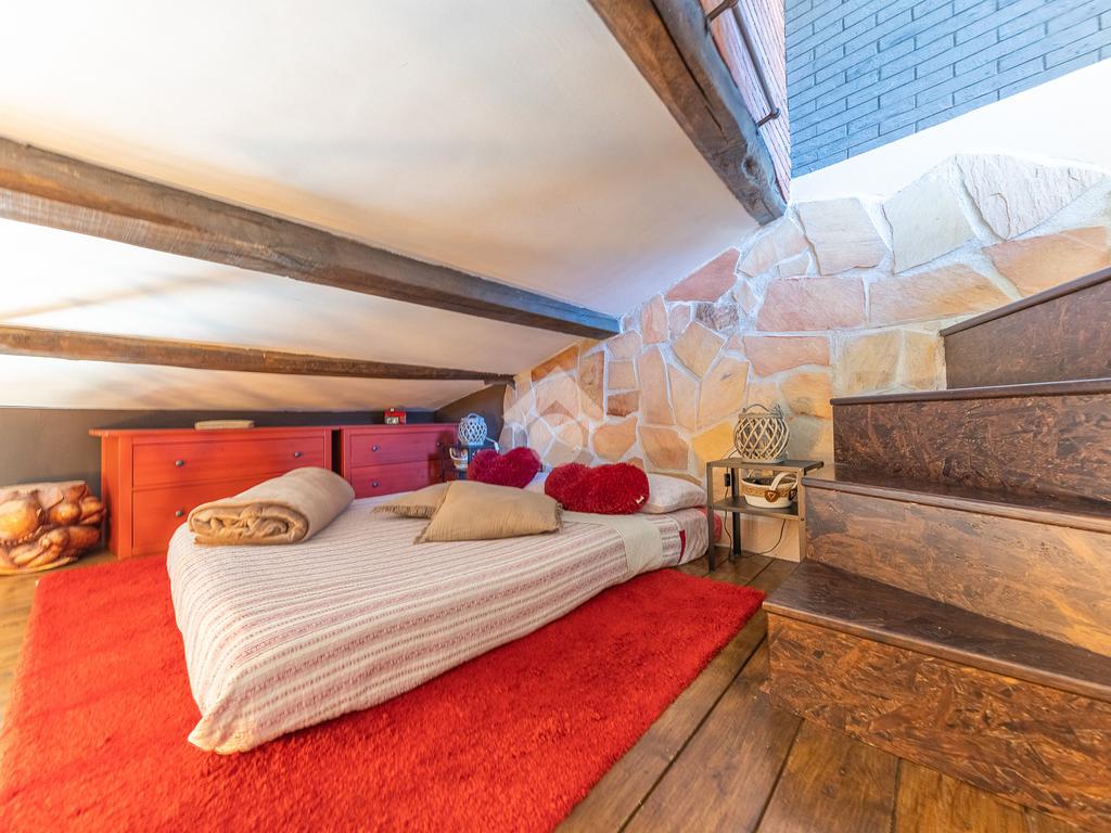 Una scala interna in legno conduce al soppalco abitabile, dove è stato ricavato un accogliente letto matrimoniale, ideale per sfruttare al meglio le altezze dell’immobile. Dal soppalco si accede a un terrazzo coperto, spazioso e riservato, ideale per pranzi all’aperto, serate con amici o semplici momenti di relax con vista aperta.