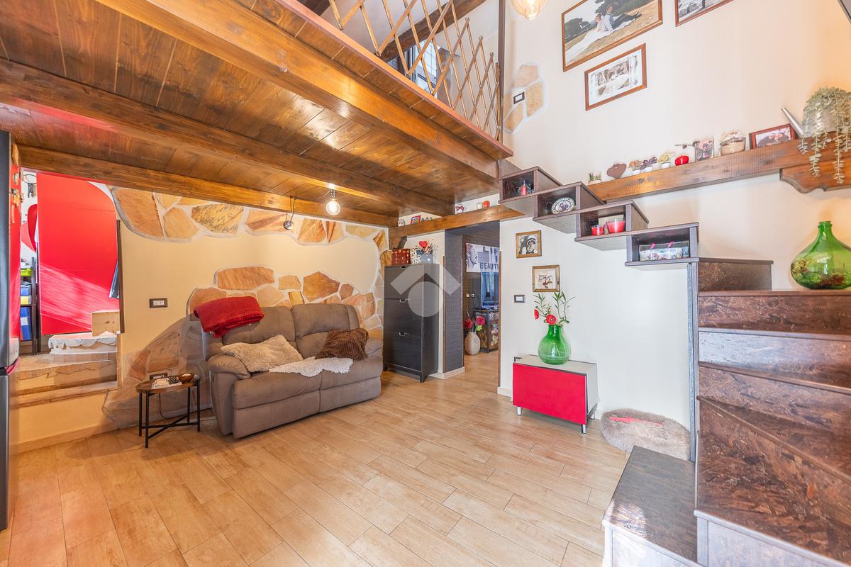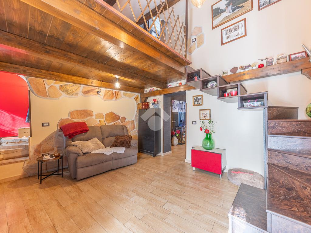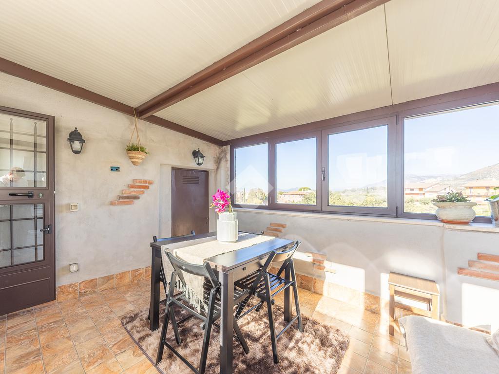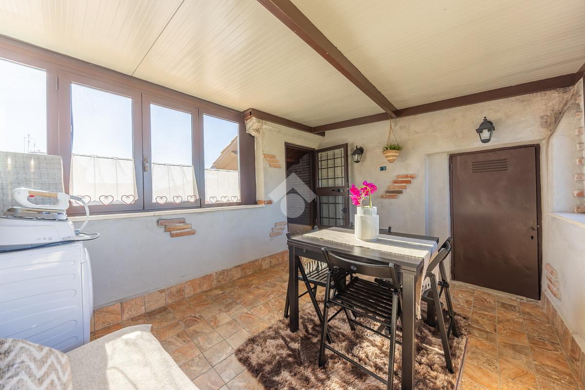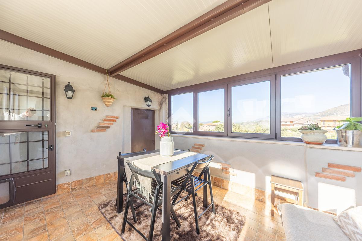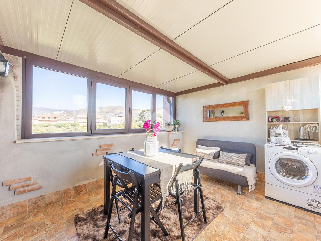 Una scala interna in legno conduce al soppalco abitabile, dove è stato ricavato un accogliente letto matrimoniale, ideale per sfruttare al meglio le altezze dell’immobile. Dal soppalco si accede a un terrazzo coperto, spazioso e riservato, ideale per pranzi all’aperto, serate con amici o semplici momenti di relax con vista aperta.