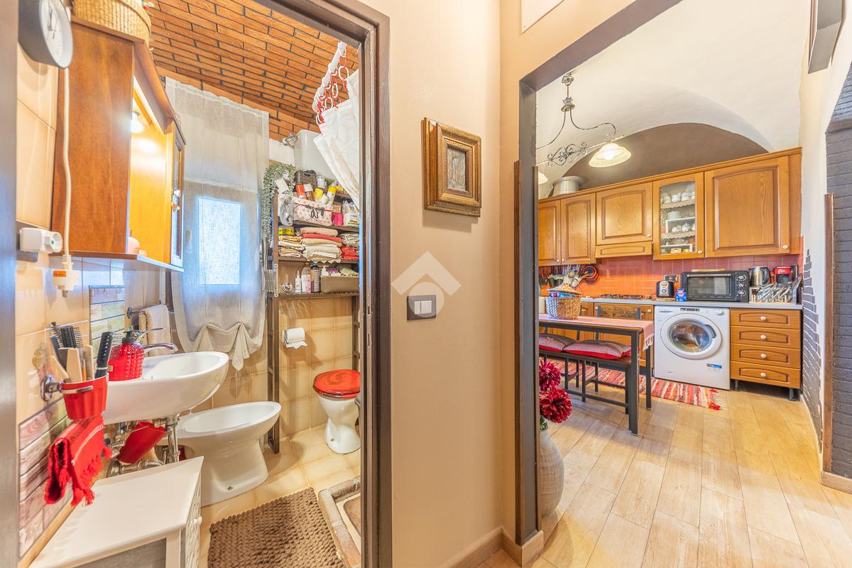 L’ingresso, indipendente, introduce in una luminosissima zona giorno con angolo cottura su misura, ben integrato nello spazio e pensato per ottimizzare ogni angolo. Adiacente si trova il bagno finestrato, completo di box doccia.