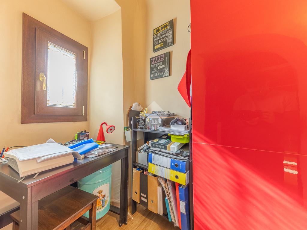 Proseguendo troviamo una stanza polivalente, oggi adibita a salone, ma perfettamente utilizzabile anche come camera da letto principale, grazie alla sua ampiezza e luminosità. Da questa stanza si accede a un locale adiacente attualmente organizzato come studio o cabina armadio, utile anche come spazio lavoro.