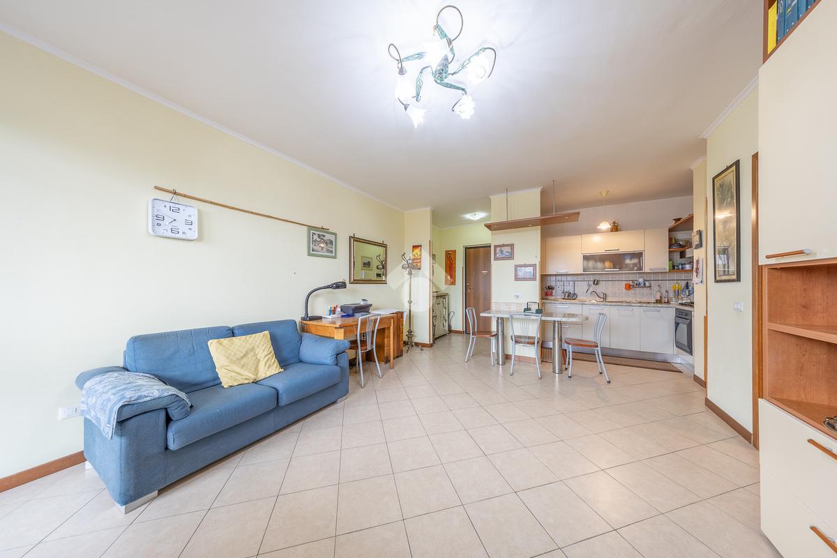 L’ingresso si apre su un soggiorno accogliente con angolo cottura, ideale per vivere la casa in modo pratico e conviviale. Dal soggiorno si accede ad un ampio balcone, perfetto per godere di uno spazio esterno fruibile durante tutto l’anno.