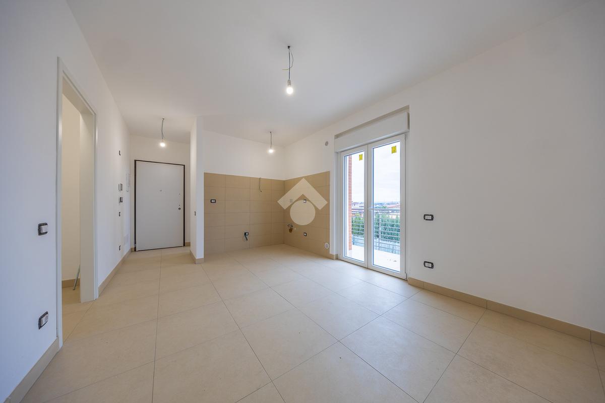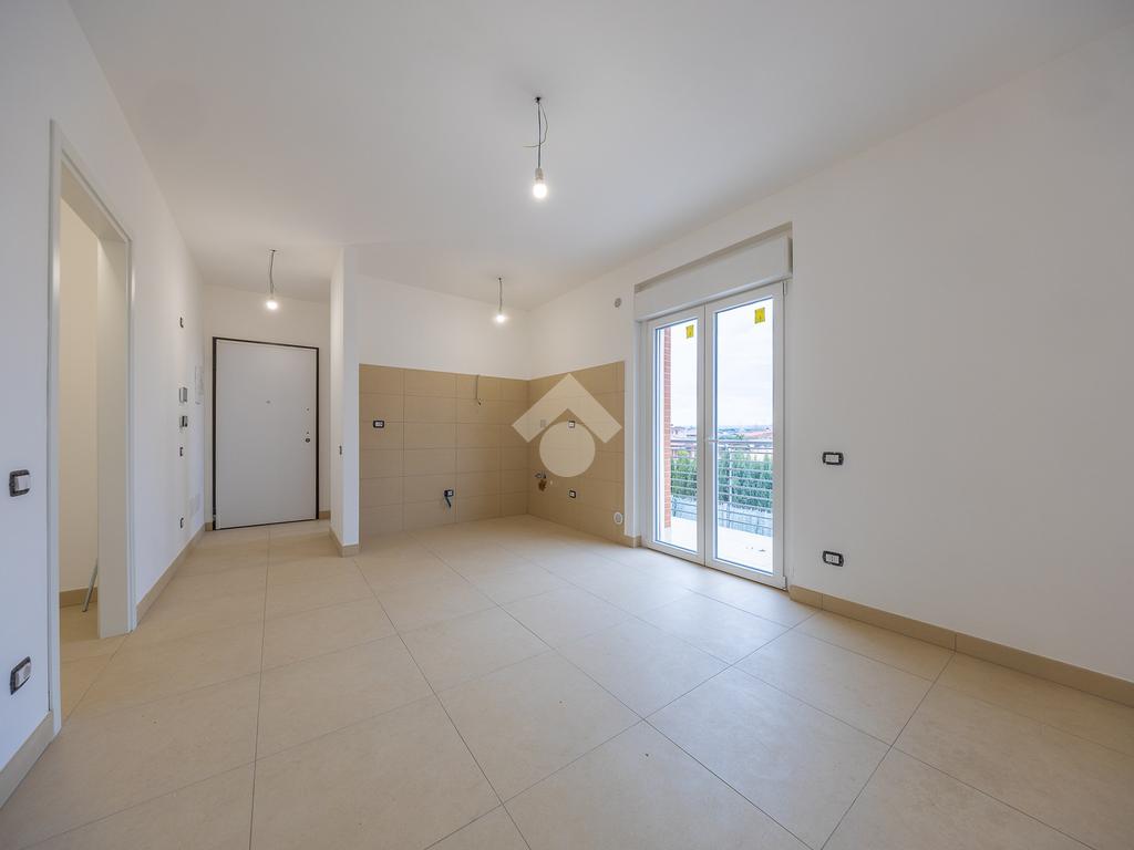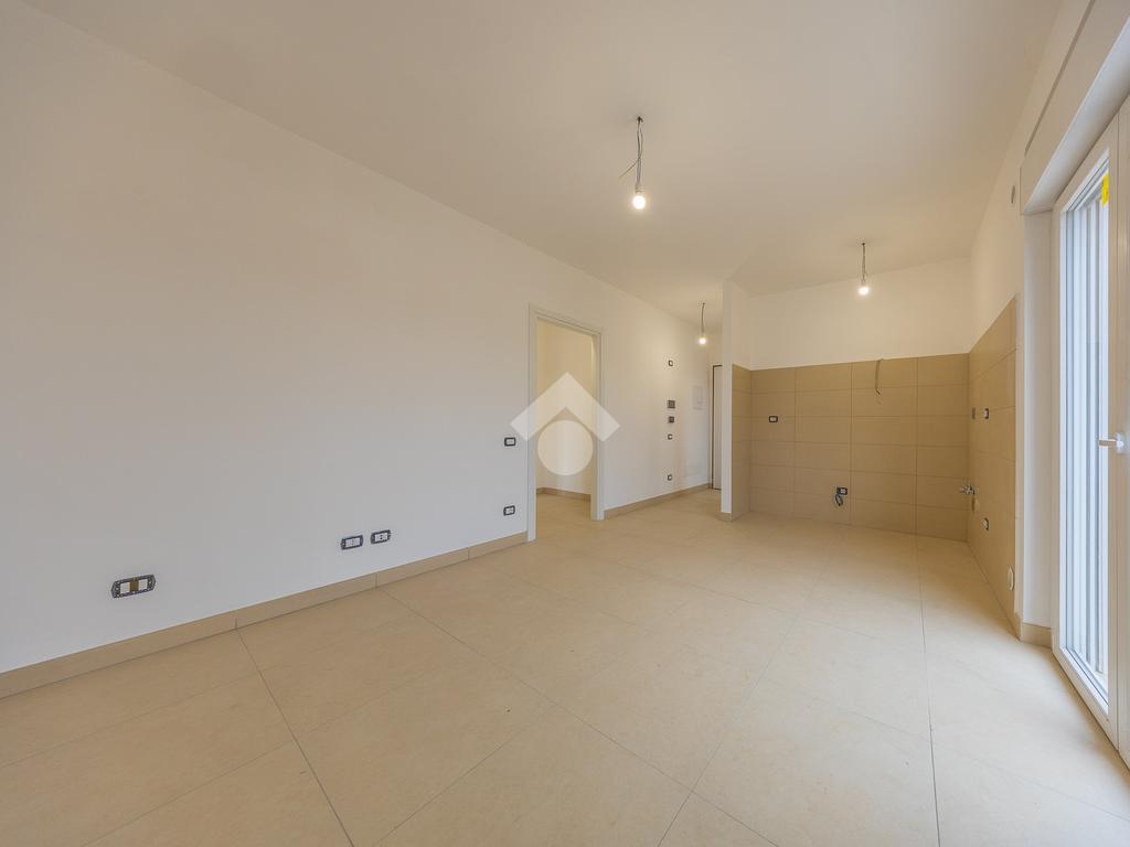 L'ingresso si apre su un luminoso salone, abbracciato dall'angolo cottura che invita a condividere piacevoli momenti conviviali e culinari, mentre le finestre ampie permettono alla luce naturale di permeare gli spazi.