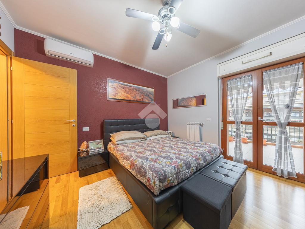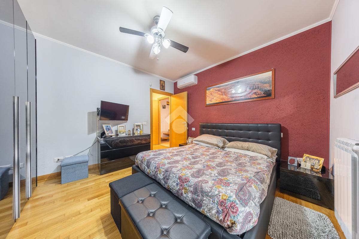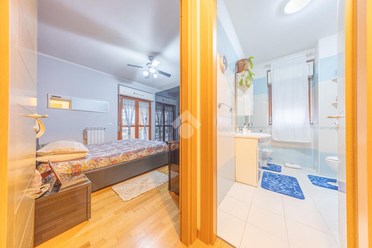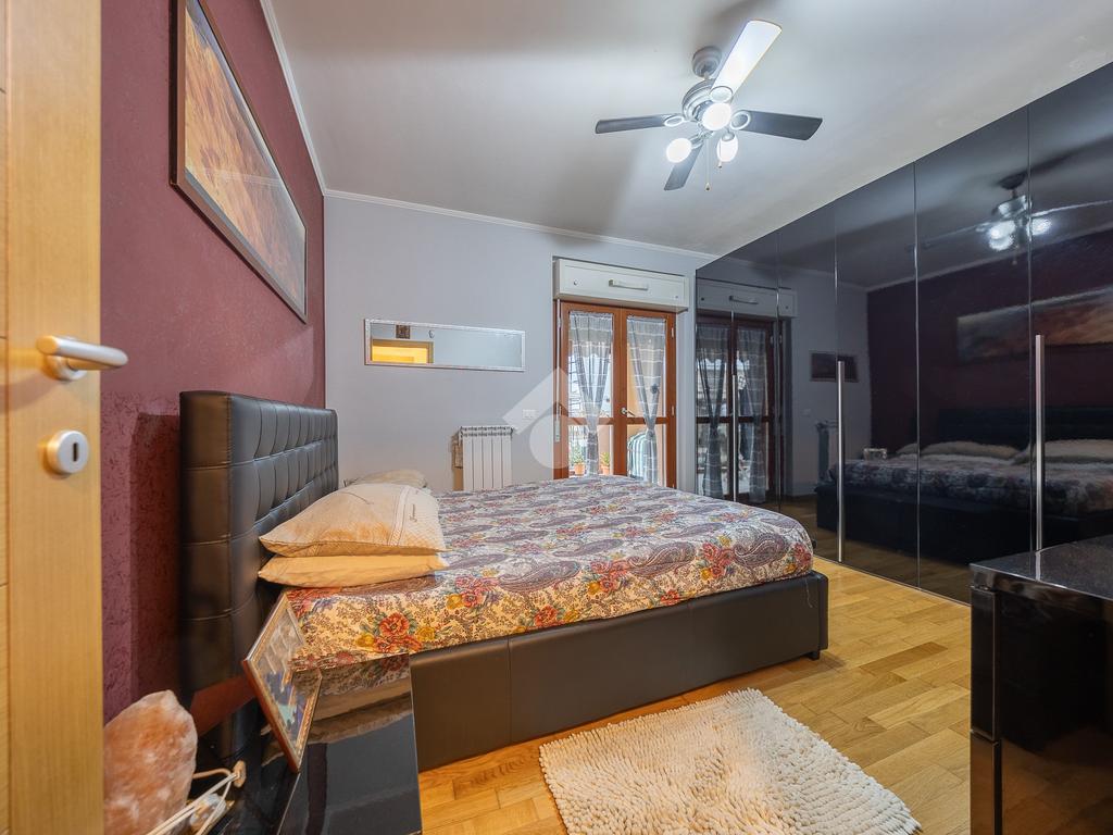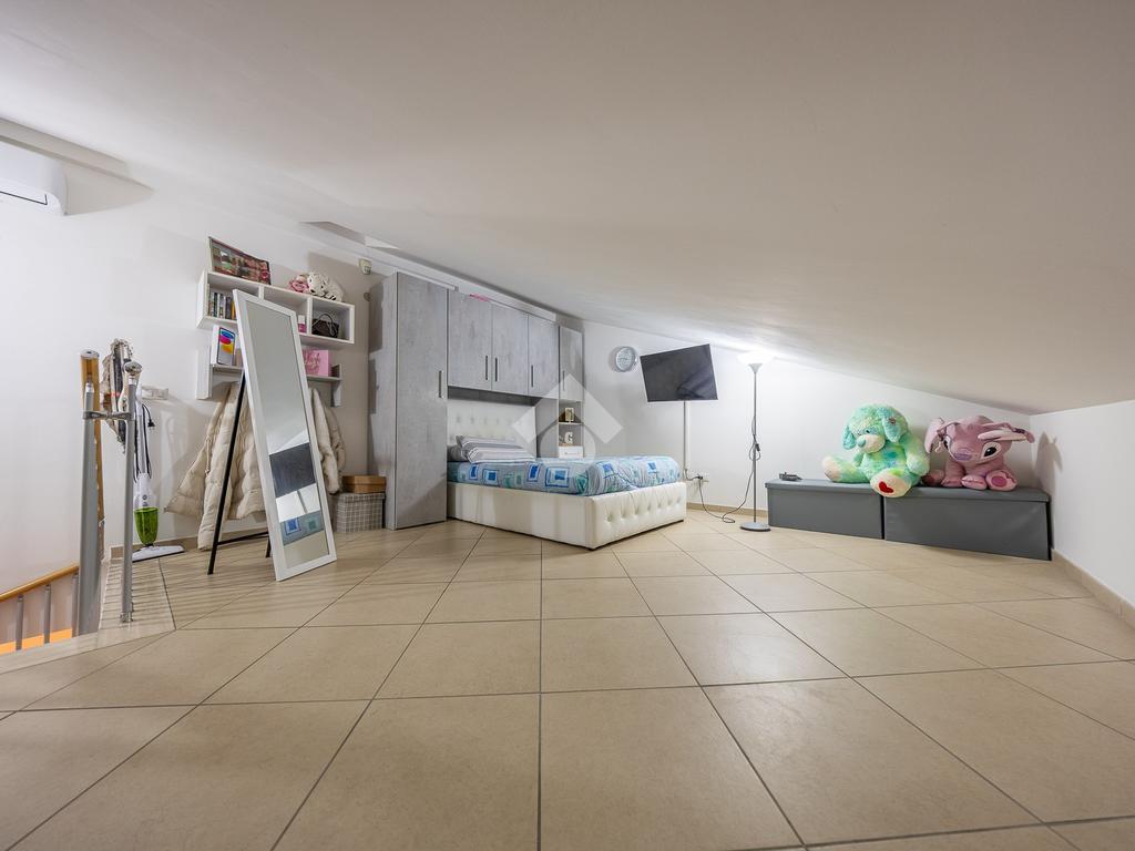 Un disimpegno accompagna alla zona notte del piano principale, dove troviamo una spaziosa camera matrimoniale e un bagno finestrato, elemento sempre molto apprezzato per la presenza di luce naturale e una migliore aerazione degli ambienti. Salendo al piano superiore si sviluppa una stanza mansardata, uno spazio versatile che può essere facilmente adattato a seconda delle esigenze, come seconda camera, studio o area dedicata agli hobby.