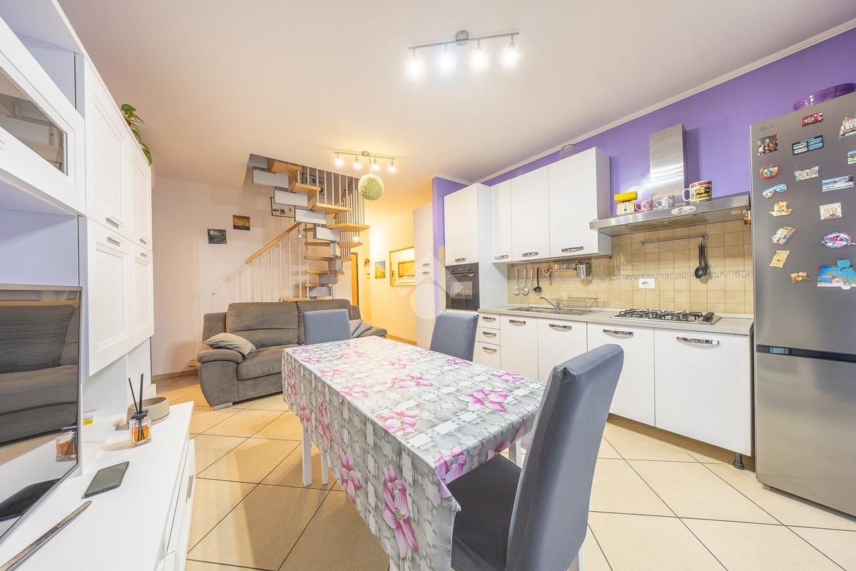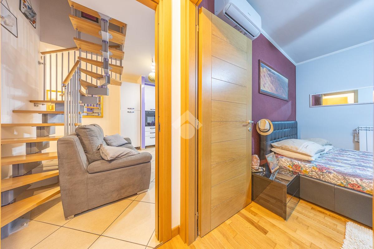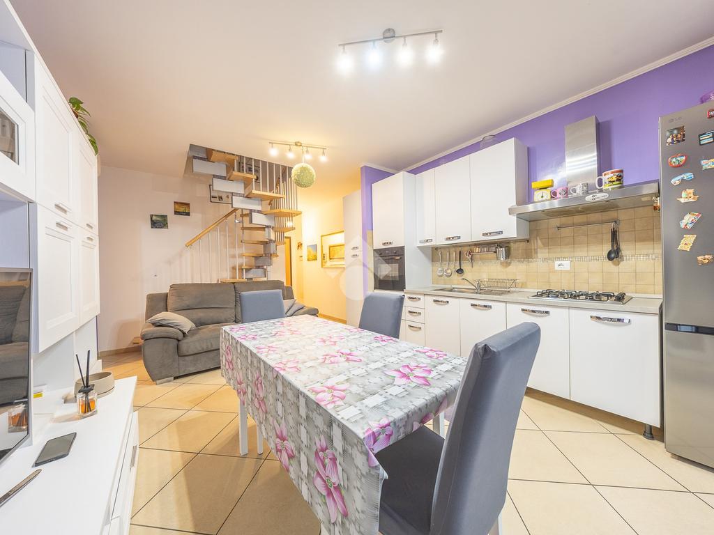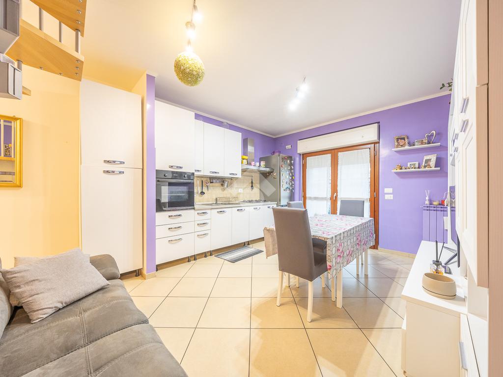 L’appartamento si sviluppa su due livelli e si distingue per la buona organizzazione degli spazi interni. L’ingresso conduce direttamente nel soggiorno con angolo cottura, un ambiente luminoso e conviviale ideale per la vita quotidiana e per momenti di relax. Da qui si accede al balcone terrazzato, uno spazio esterno piacevole e vivibile, perfetto per trascorrere del tempo all’aria aperta.