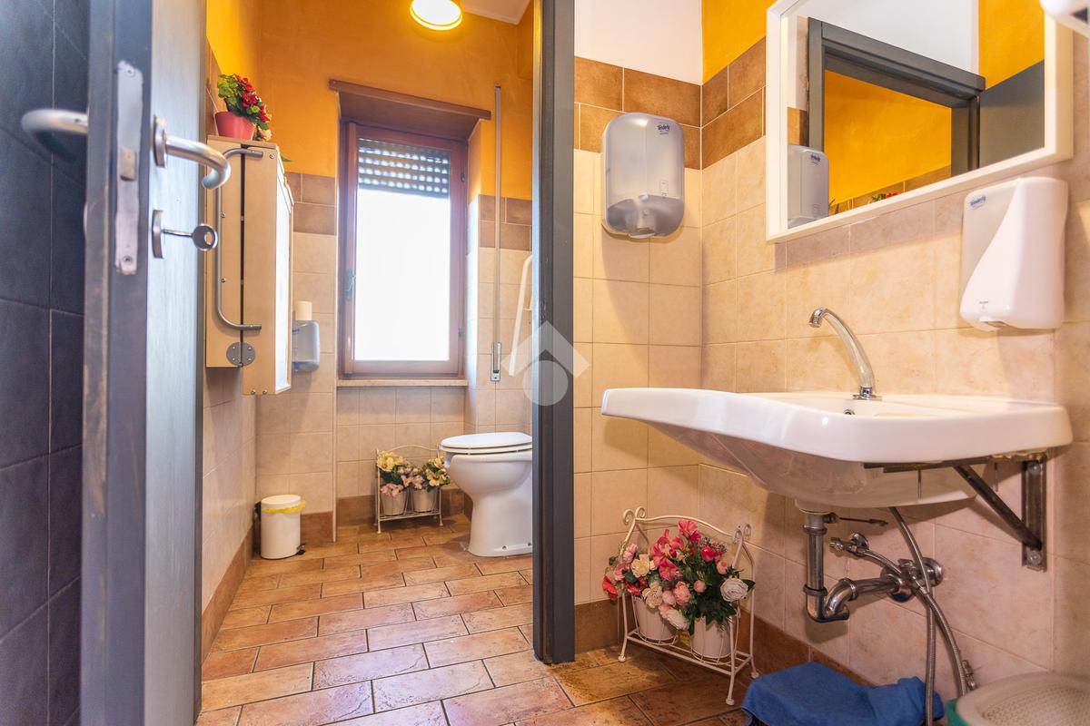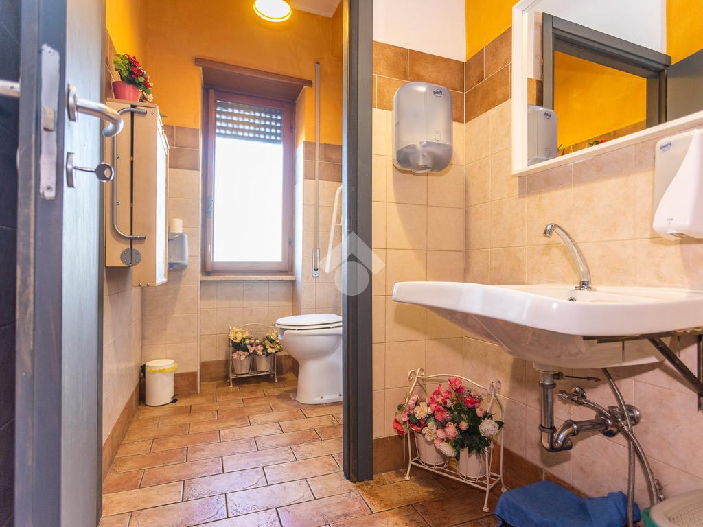 Tramite pochi gradini si accede a una zona rialzata composta da due ambienti distinti, uno dei quali può essere adibito a ufficio privato, studio, deposito o magazzino, mentre l’altro ospita un locale servizio dotato di doppi servizi igienici con antibagno, ideale per rispondere alle esigenze di attività aperte al pubblico o con personale.