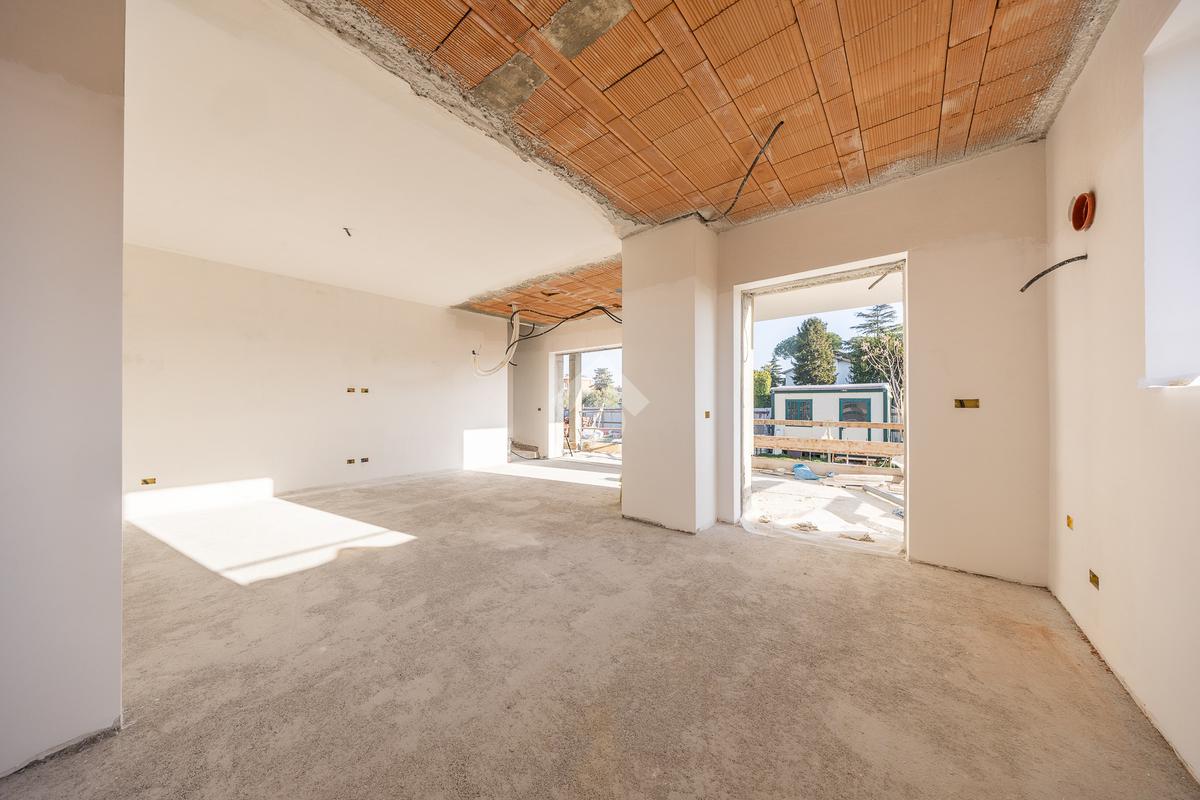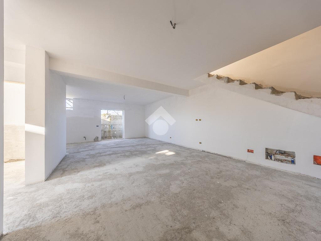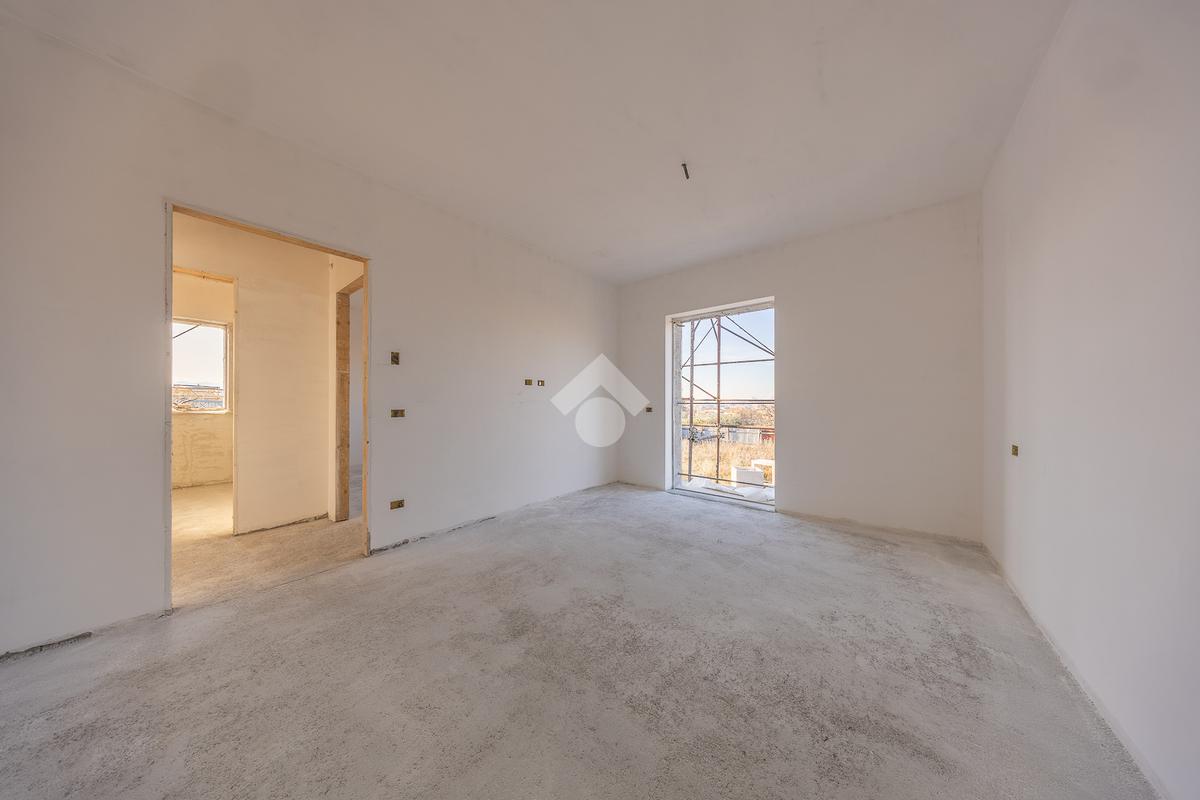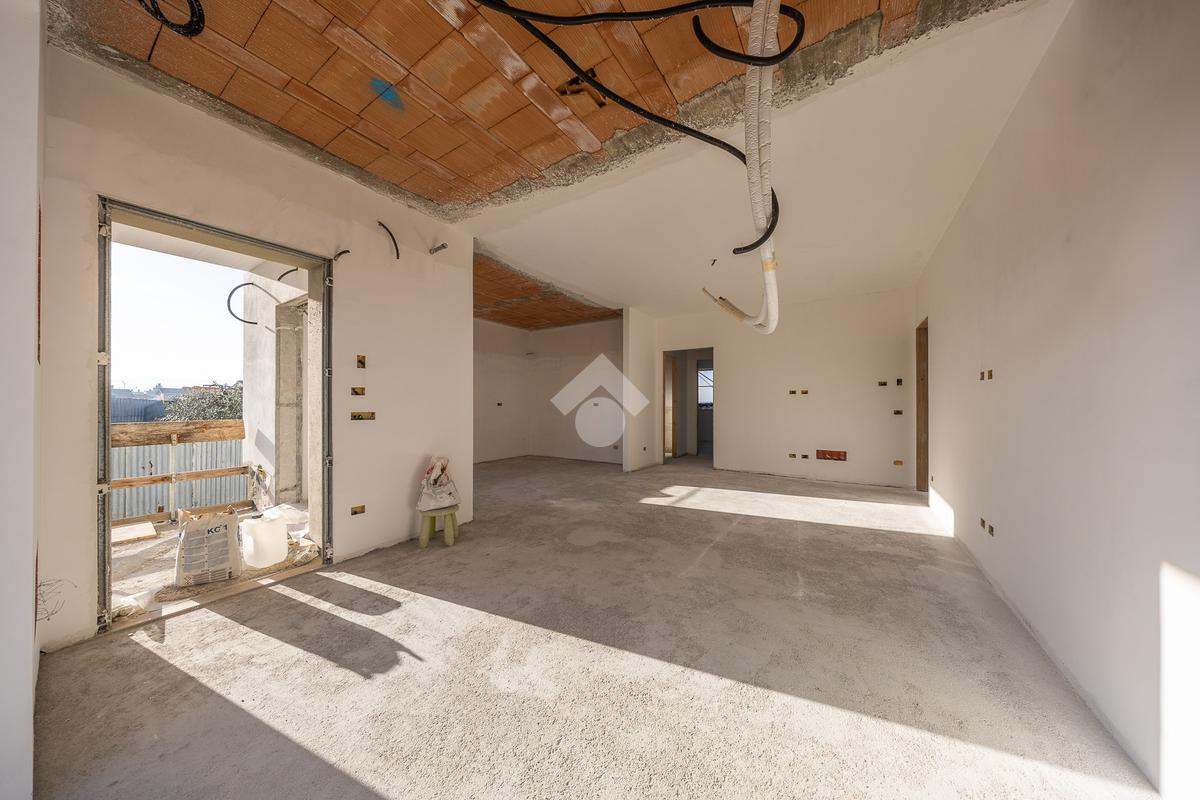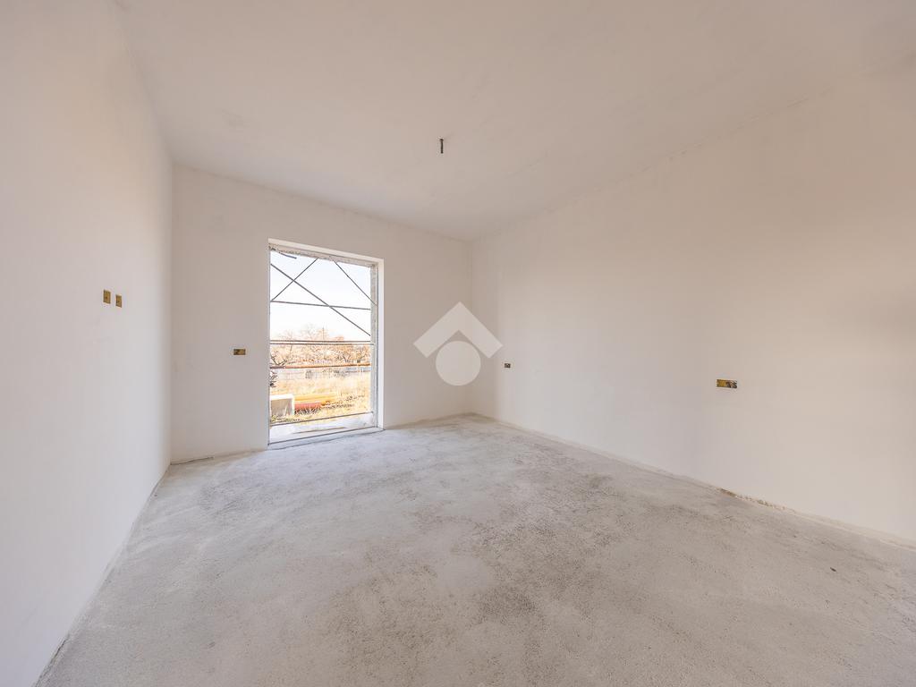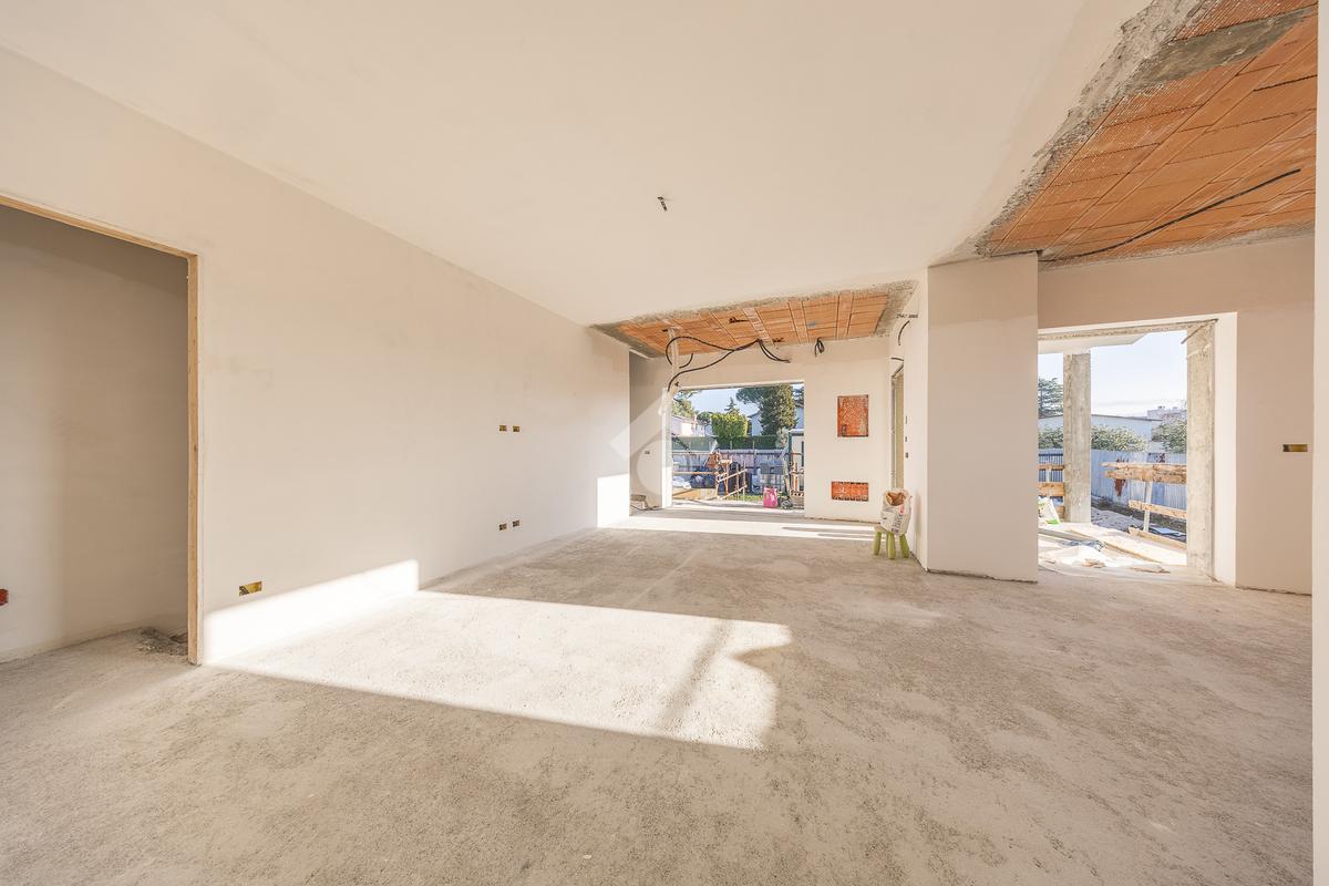Un ampio soggiorno con angolo cottura, progettato per accogliere soluzioni con isola o penisola, perfetto per chi ama condividere momenti in casa. L'accesso diretto al portico esterno amplia lo spazio abitativo, regalando un ambiente ideale per vivere all'aperto in ogni stagione.