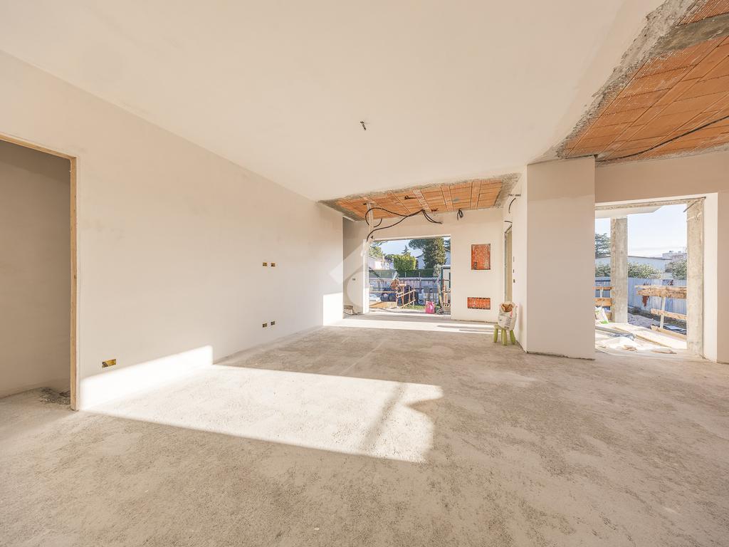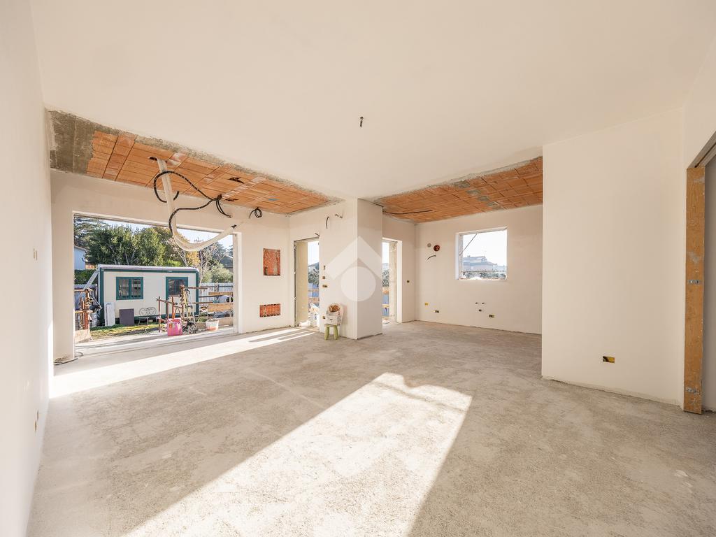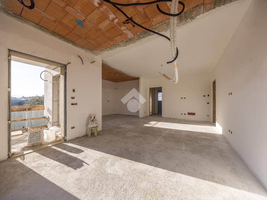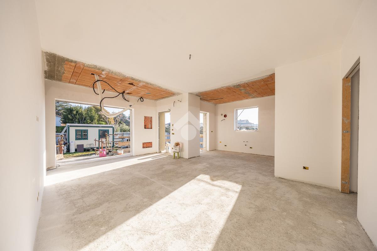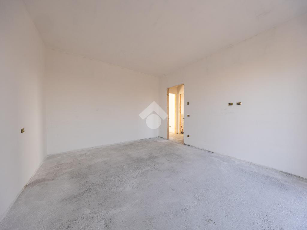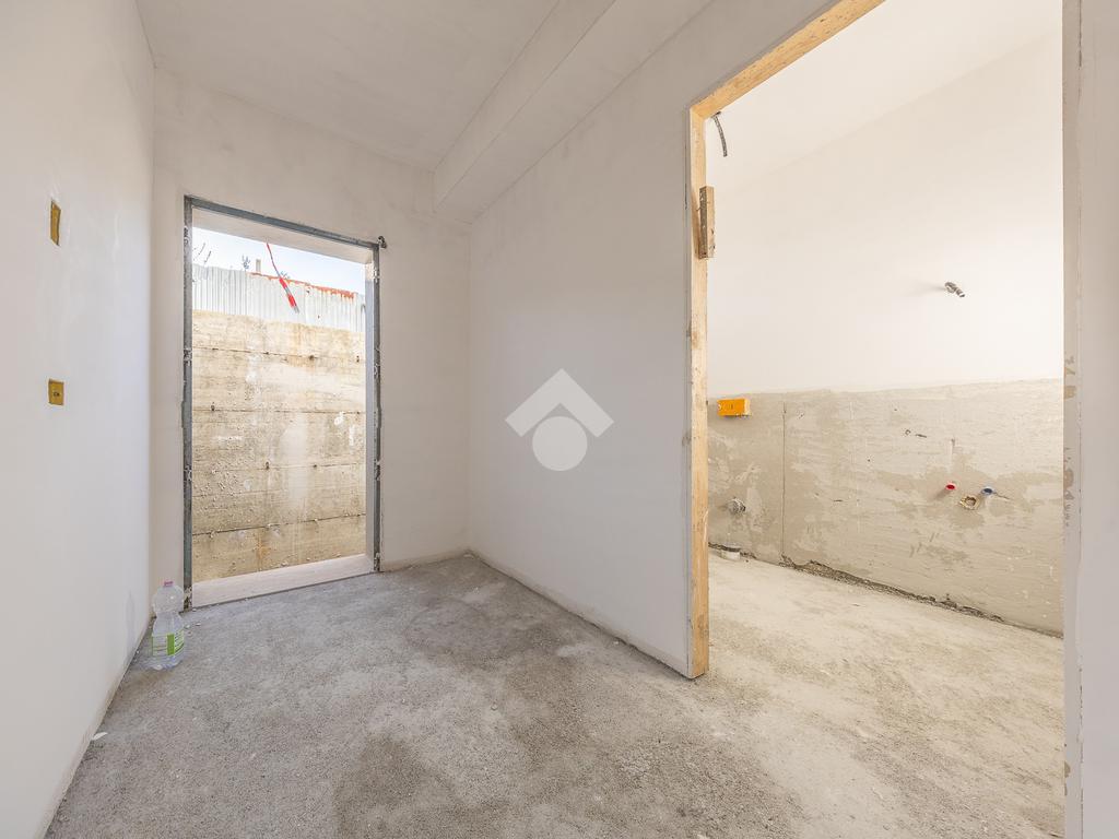 Un ampio soggiorno con angolo cottura, progettato per accogliere soluzioni con isola o penisola, perfetto per chi ama condividere momenti in casa. L'accesso diretto al portico esterno amplia lo spazio abitativo, regalando un ambiente ideale per vivere all'aperto in ogni stagione.