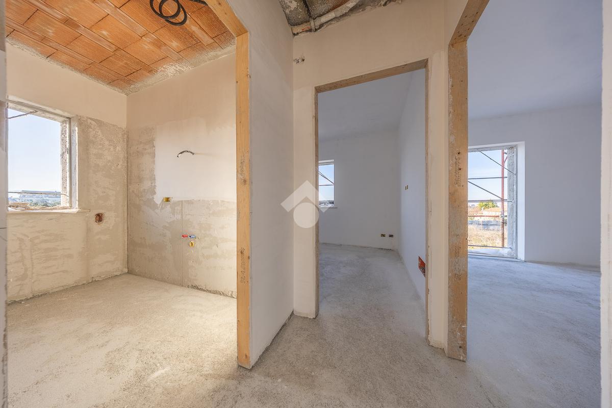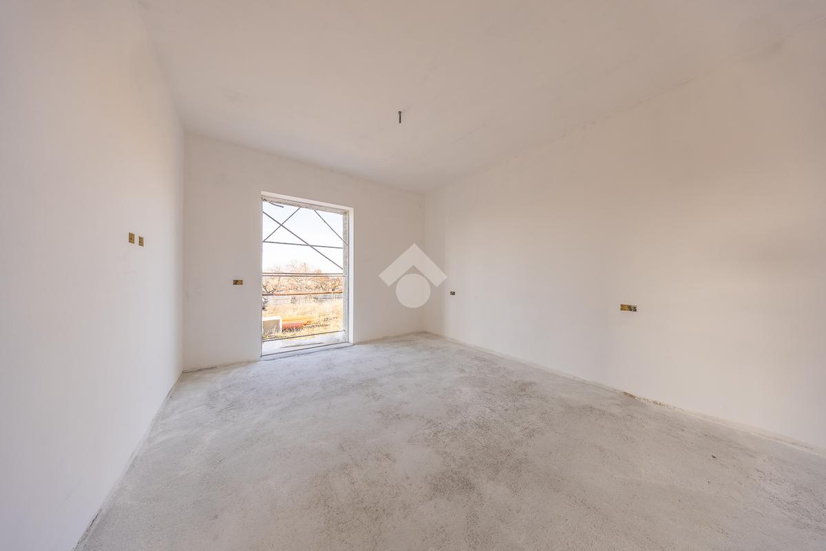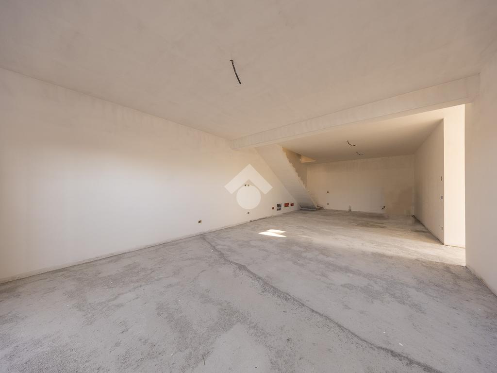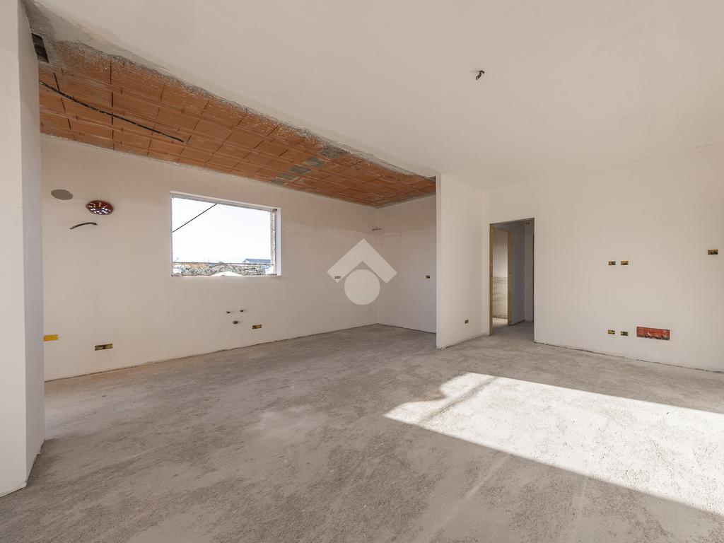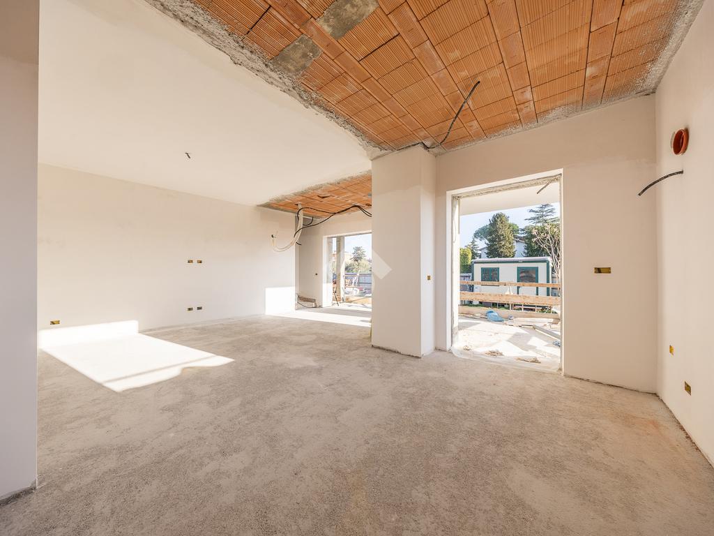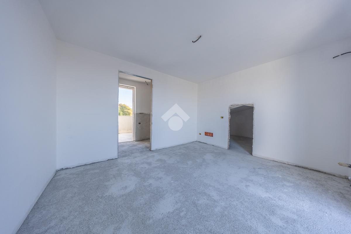 Un ampio soggiorno con angolo cottura, progettato per accogliere soluzioni con isola o penisola, perfetto per chi ama condividere momenti in casa. L'accesso diretto al portico esterno amplia lo spazio abitativo, regalando un ambiente ideale per vivere all'aperto in ogni stagione.