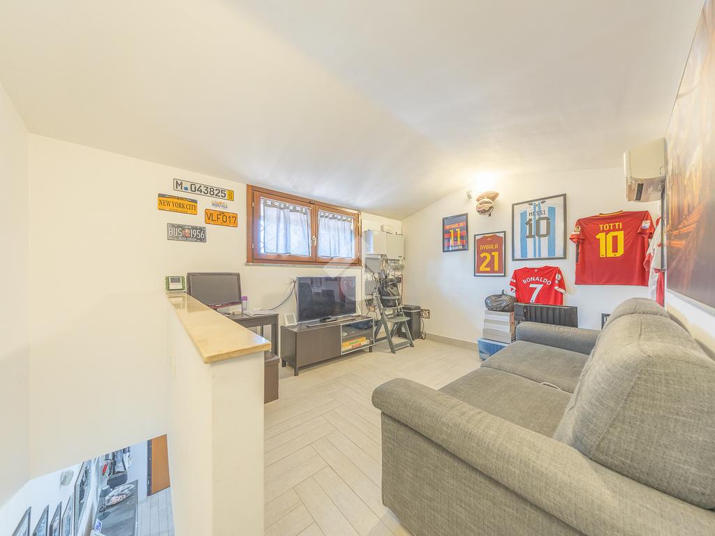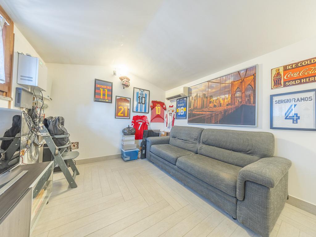 Un luminoso salone con angolo cottura costituisce il cuore della zona giorno, arricchito da un bagno finestrato con doccia e dall'accesso diretto al giardino privato, ideale per trascorrere momenti all'aperto in famiglia o con gli amici.