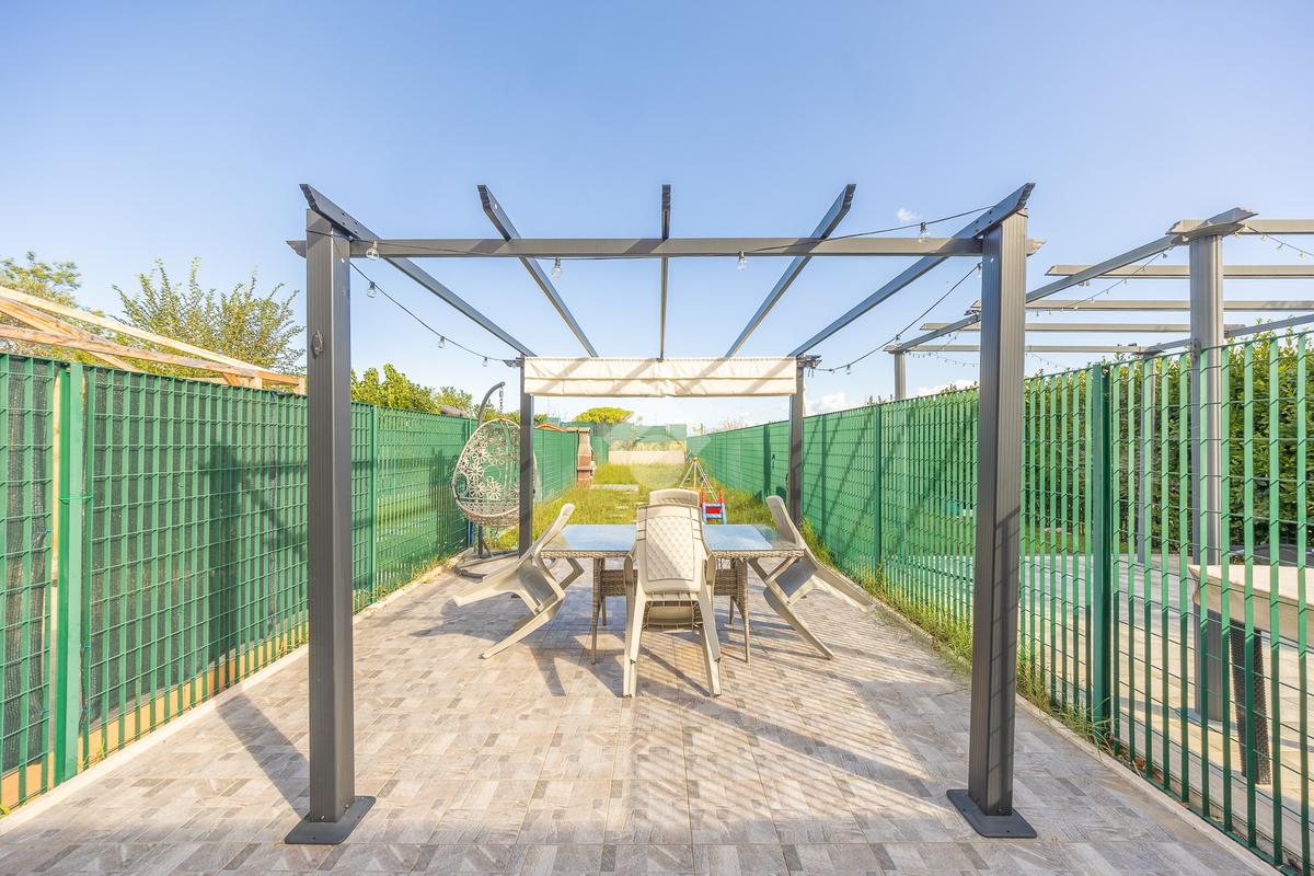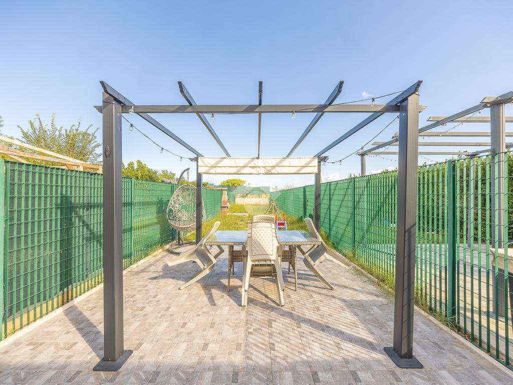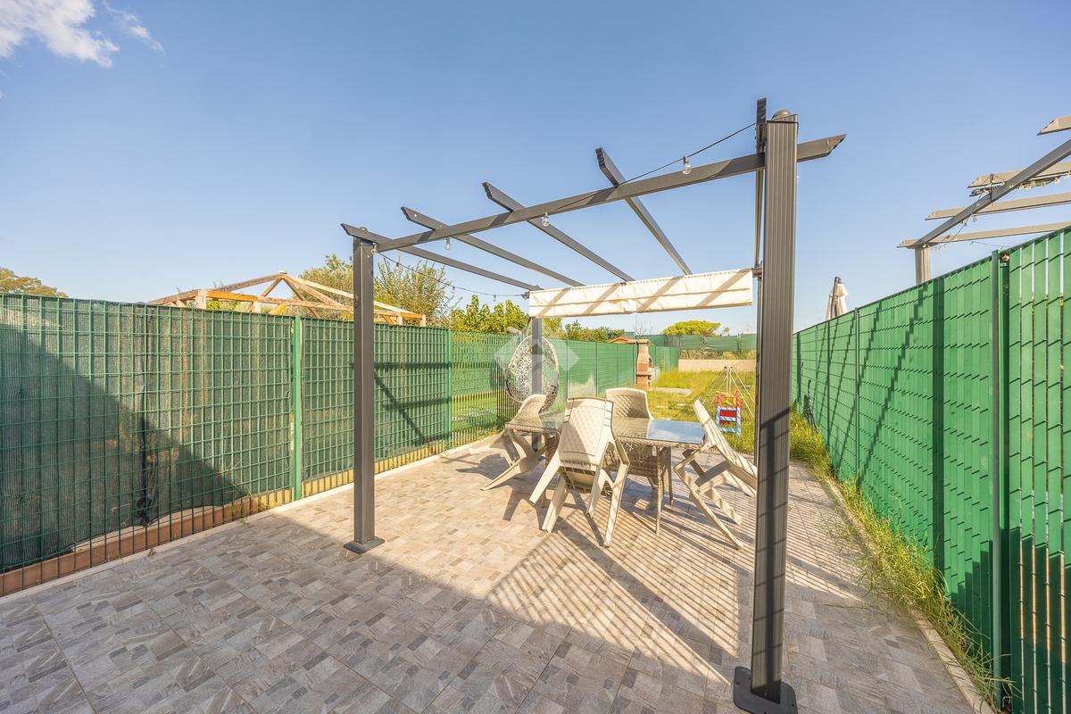La proprietà è dotata di doppio ingresso pedonale e carrabile, con possibilità di parcheggiare fino a tre autovetture interne. Un ampio patio esterno accoglie e conduce all'ingresso principale, creando uno spazio perfetto per ospitalità e relax.
