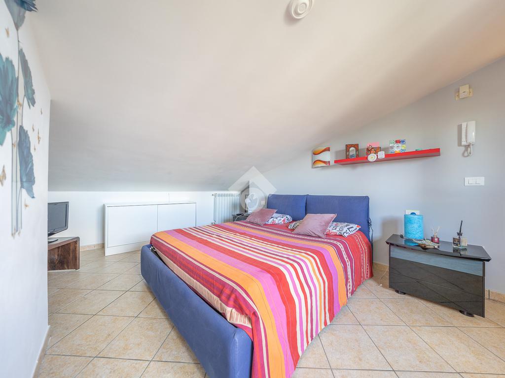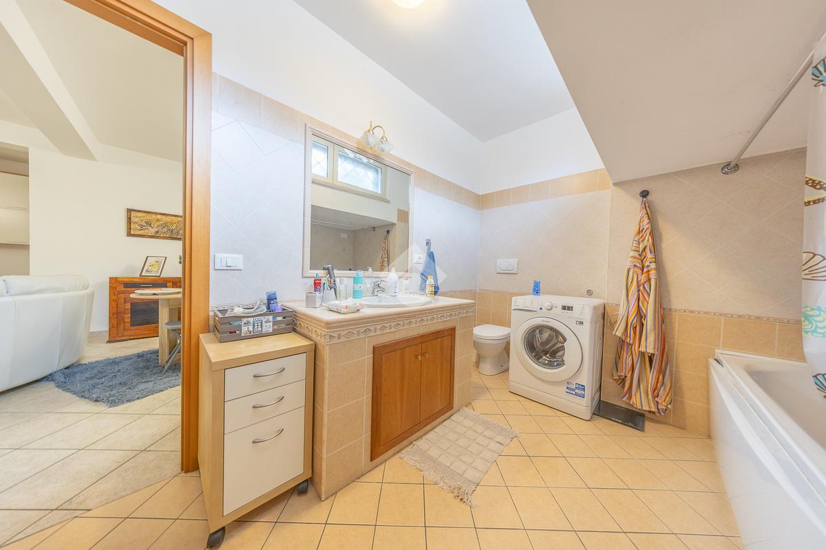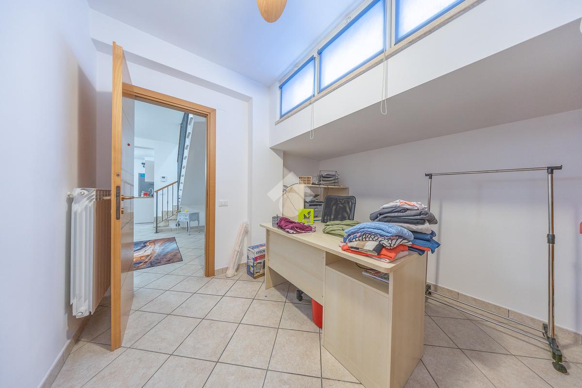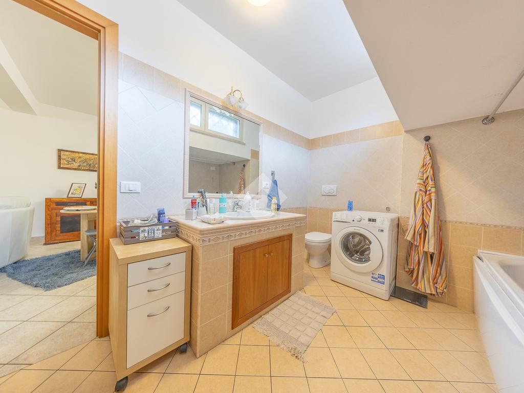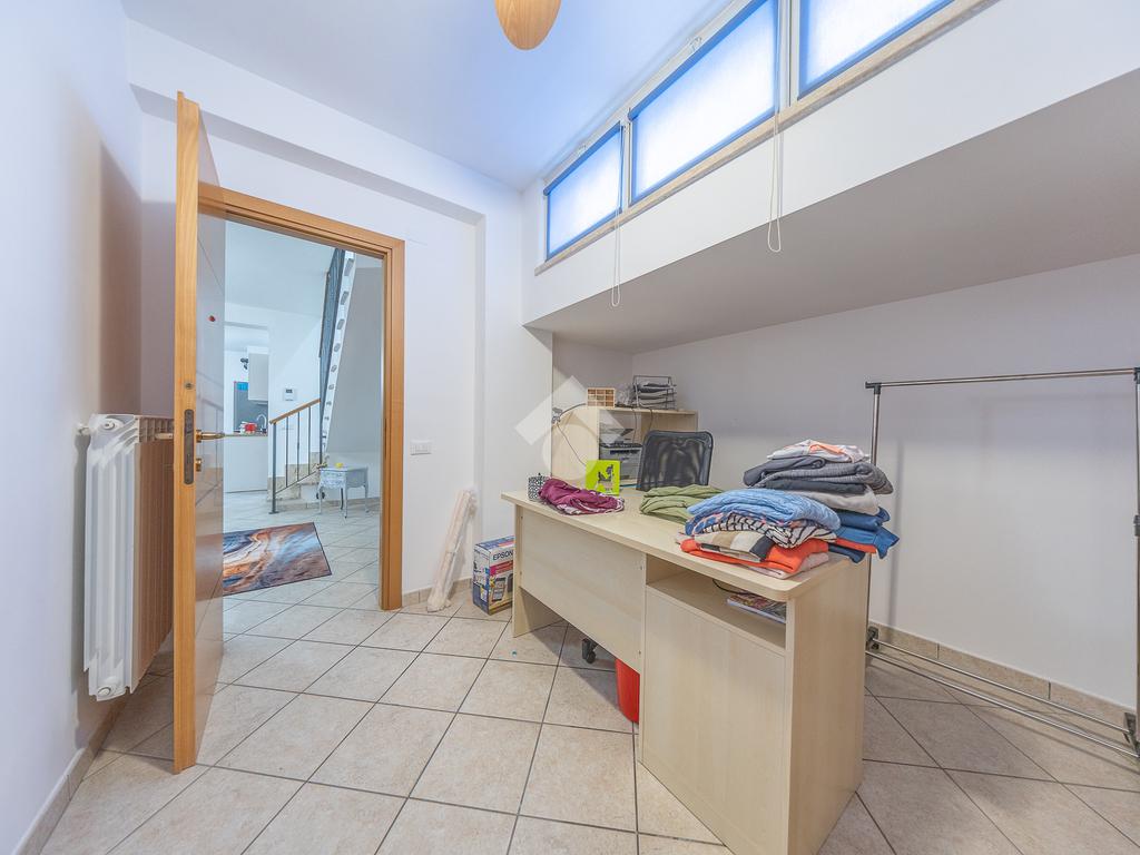 Al piano superiore, mansardato, troviamo una stanza adattabile a diversi usi, come camera o studio, e un secondo bagno finestrato.