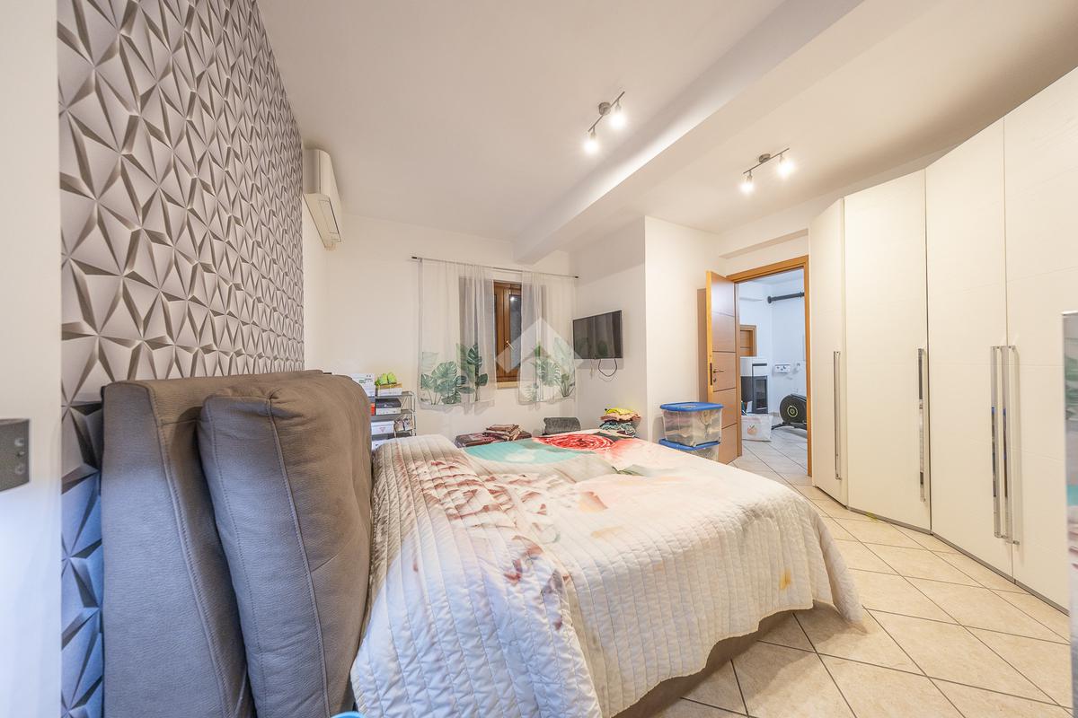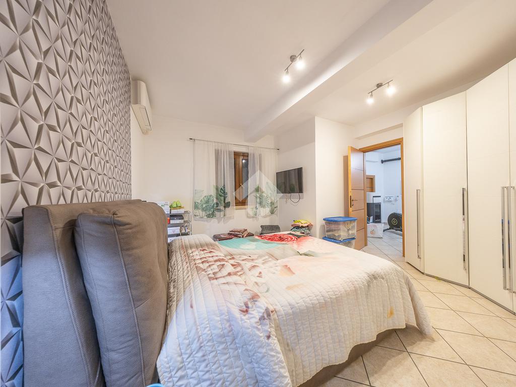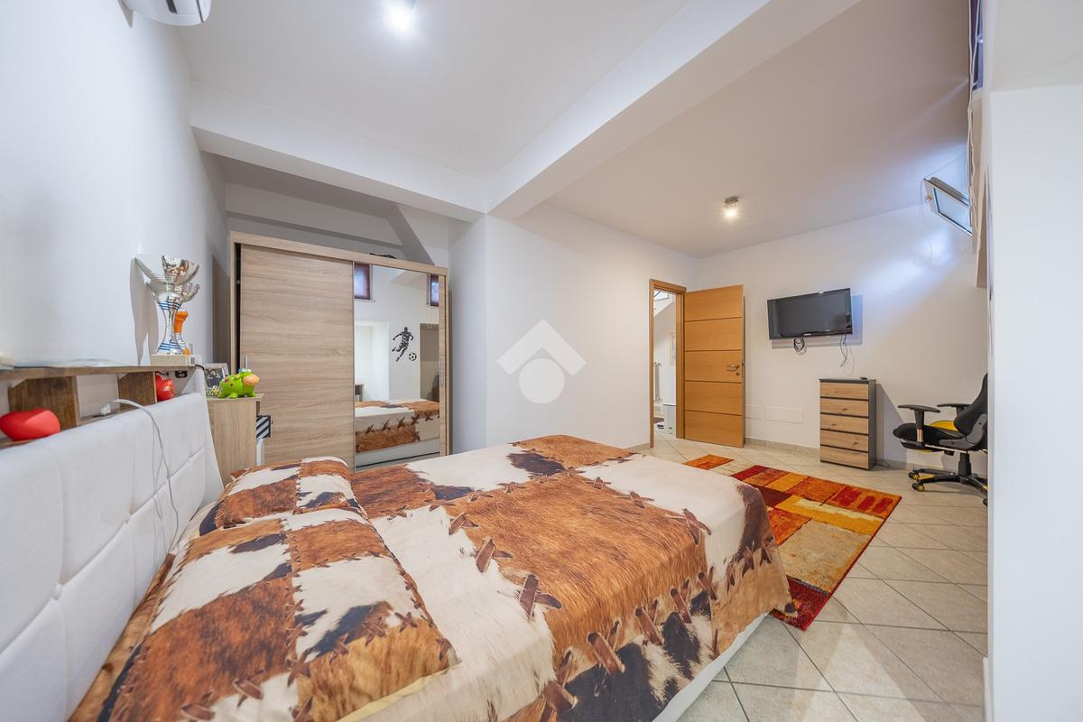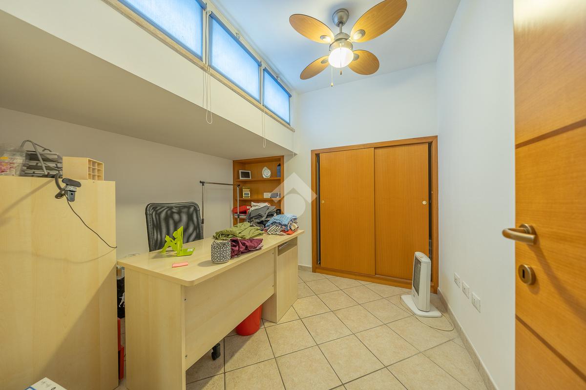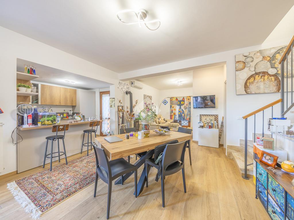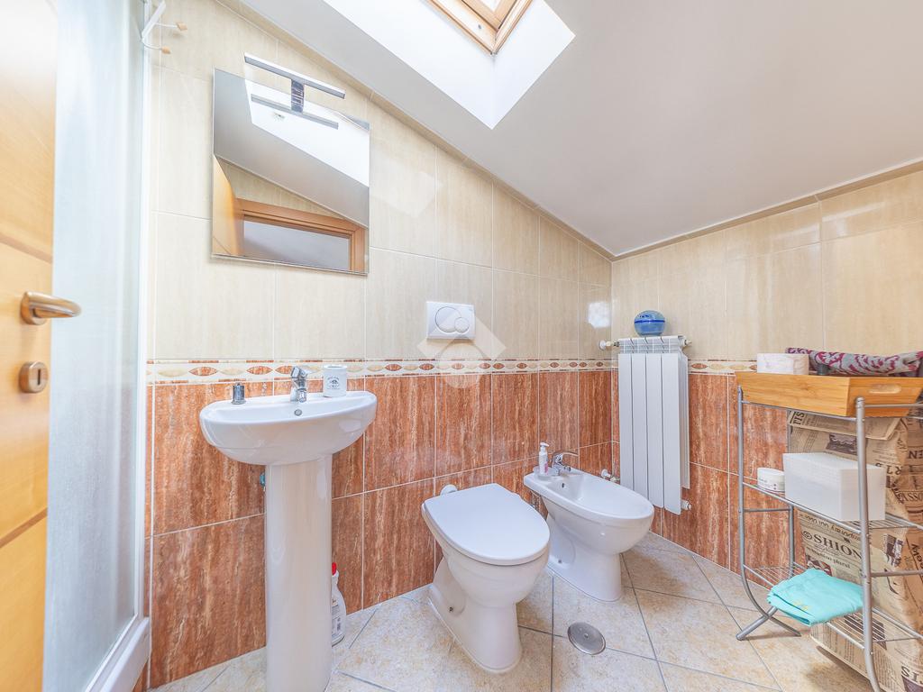 Al piano superiore, mansardato, troviamo una stanza adattabile a diversi usi, come camera o studio, e un secondo bagno finestrato.