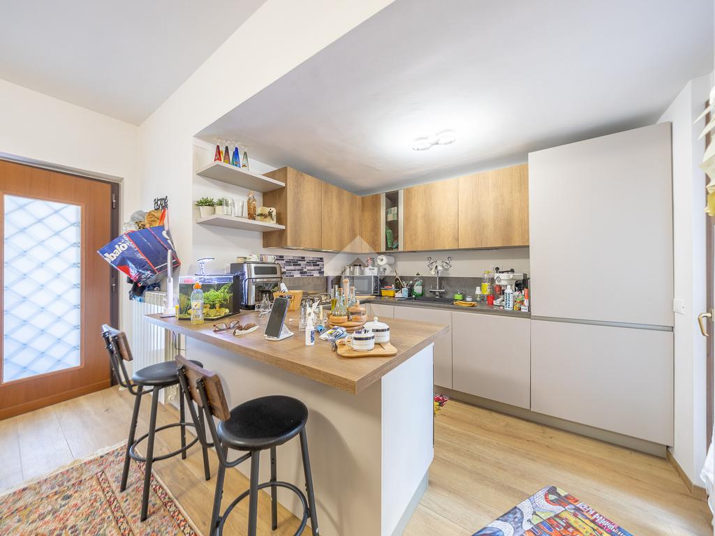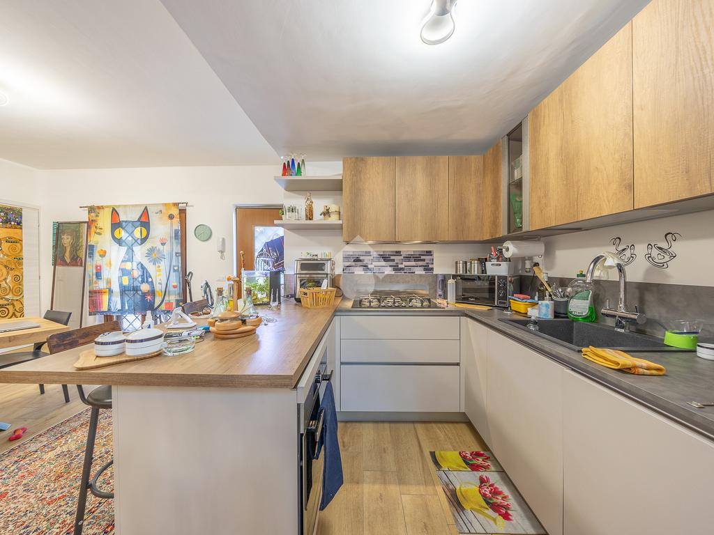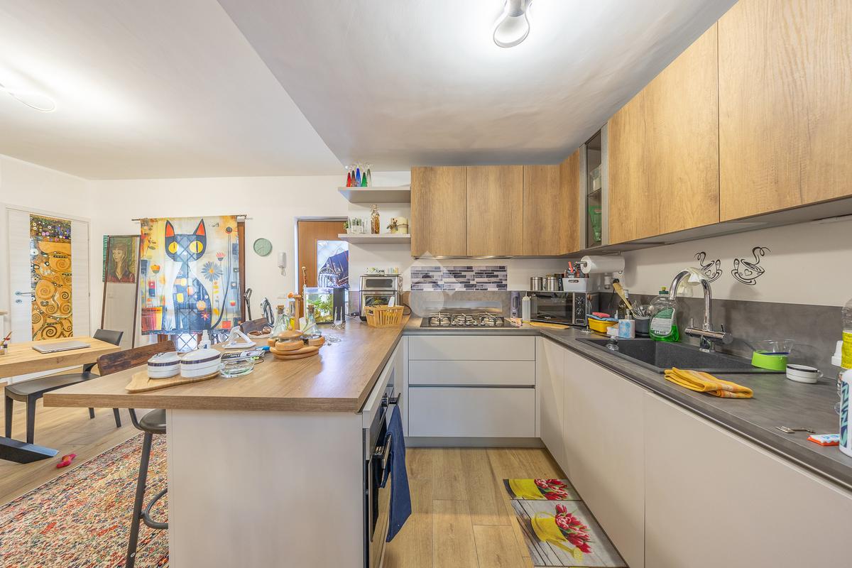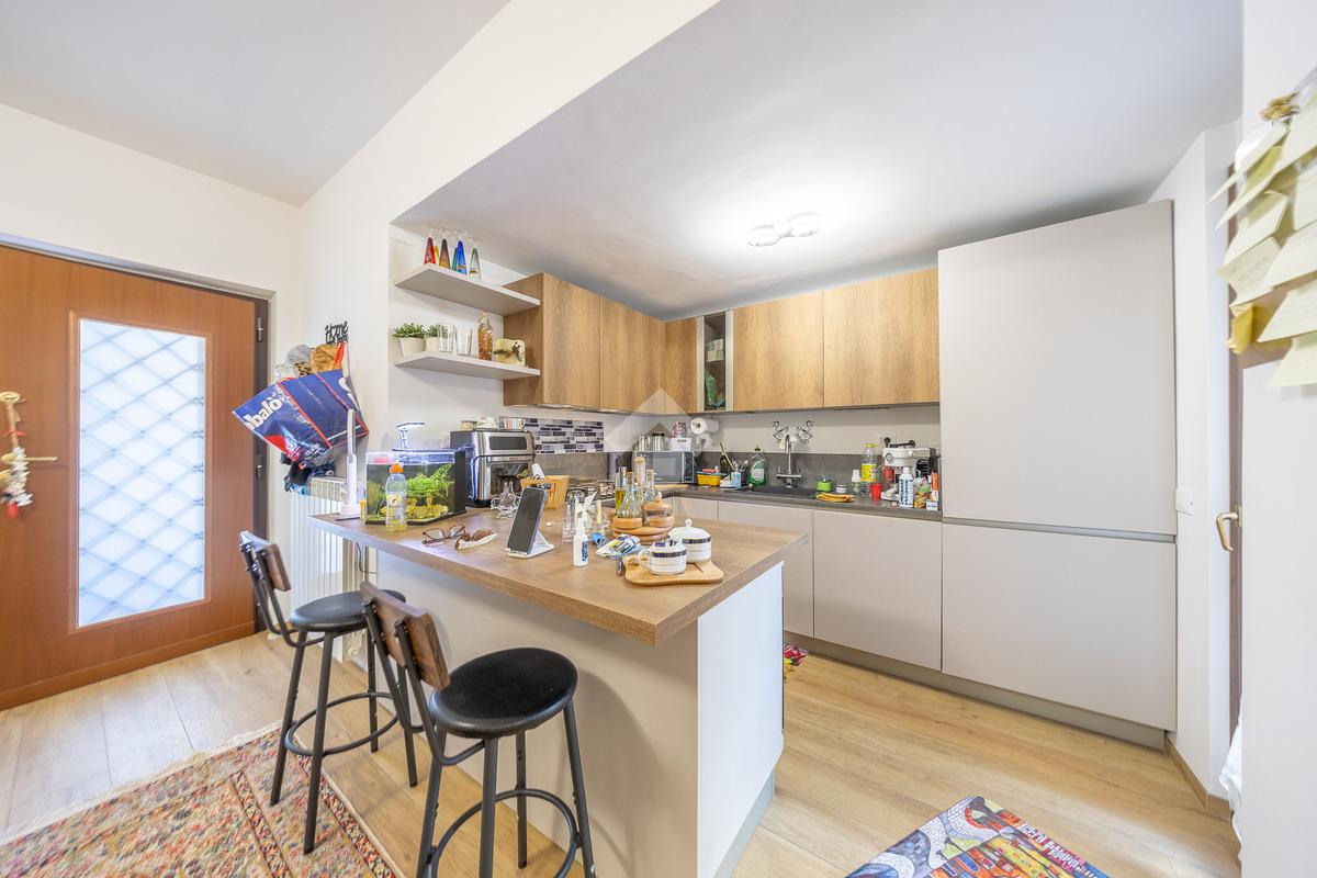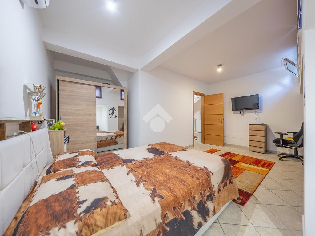 Al piano superiore, mansardato, troviamo una stanza adattabile a diversi usi, come camera o studio, e un secondo bagno finestrato.