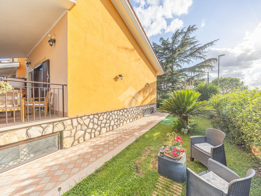 L'immobile dispone di un giardino angolare di circa 130 mq, in parte mattonato e in parte a verde, con una comoda zona barbecue ideale per pranzi e cene all'aperto. Sono presenti doppio accesso, sia pedonale che carrabile, e due posti auto interni alla proprietà.
