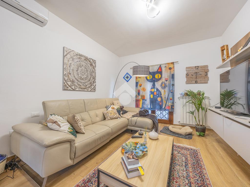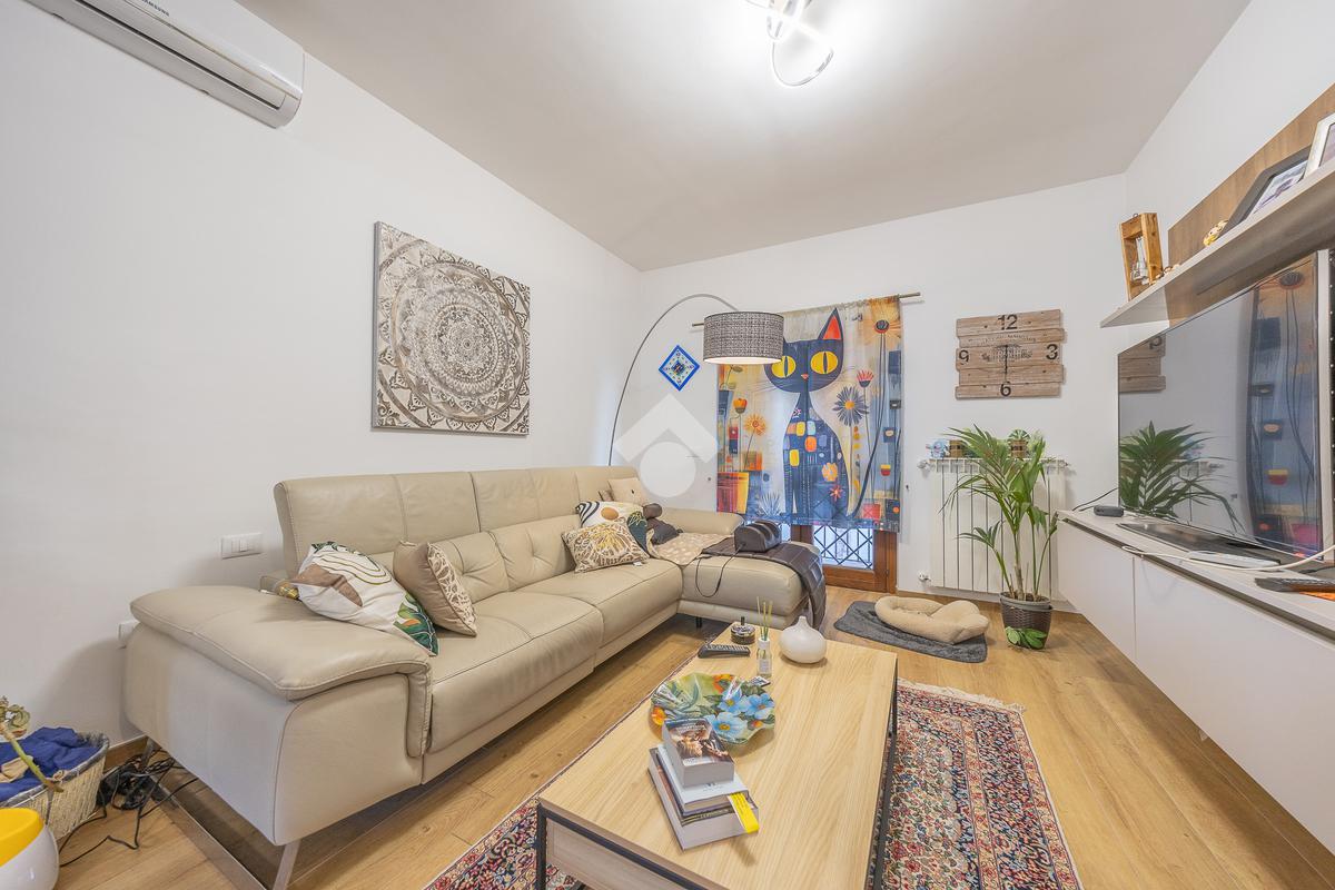 Al piano terra si accede a un portico di circa 20 mq, perfetto per momenti di relax all'aperto. Entrando, si trova un ampio soggiorno con angolo cottura, luminoso e ben distribuito, con accesso a un terrazzino tramite porta finestra. Completa il piano un bagno finestrato, comodo e ben rifinito.