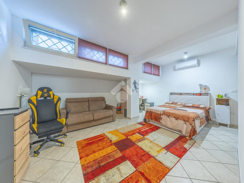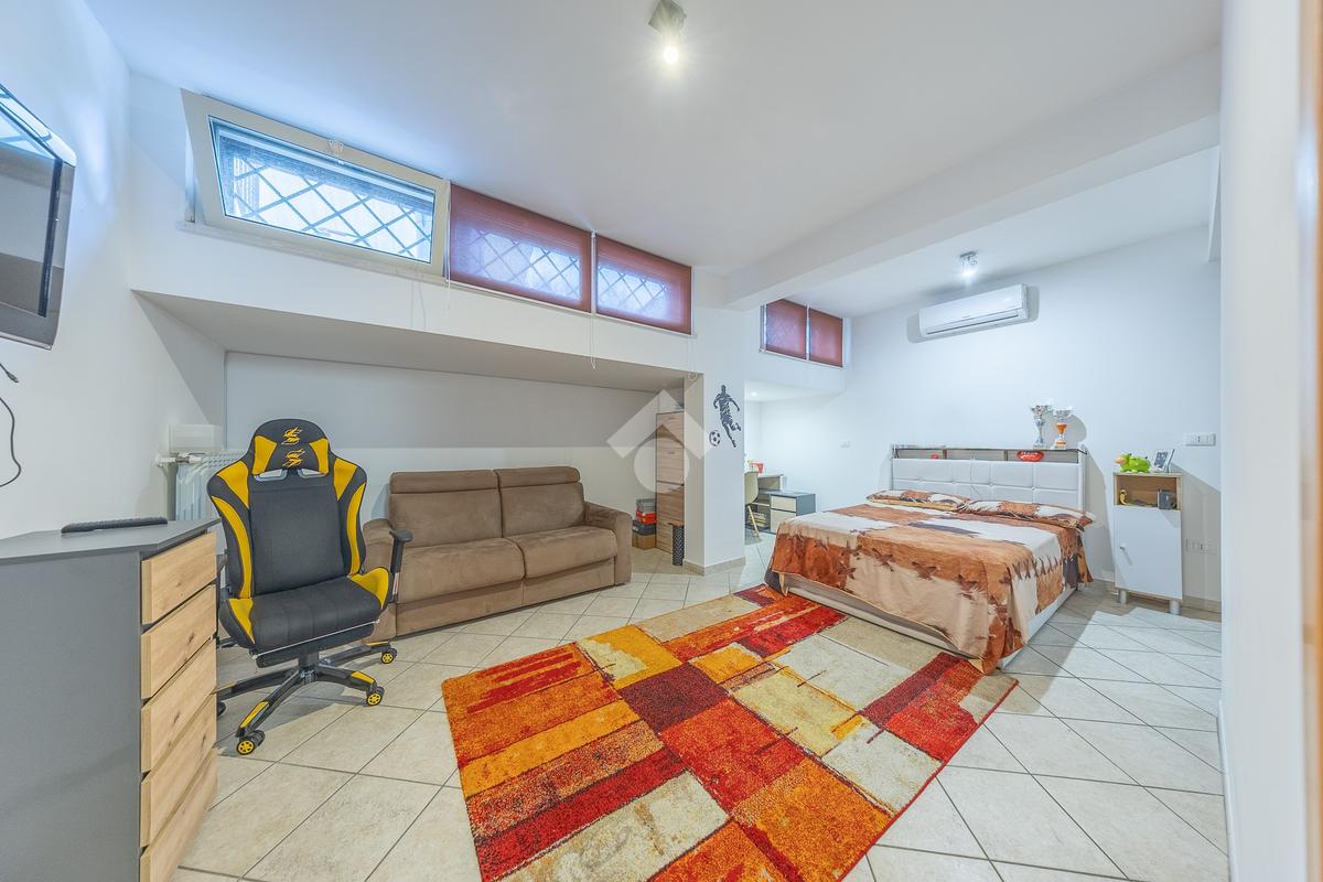 Il piano seminterrato ospita una grande sala hobby con un secondo angolo cottura, due stanze matrimoniali, una stanza singola, un terzo bagno finestrato con vasca e due ripostigli. È presente anche un secondo ingresso indipendente, che permette di vivere il piano in totale autonomia rispetto al resto dell'abitazione.