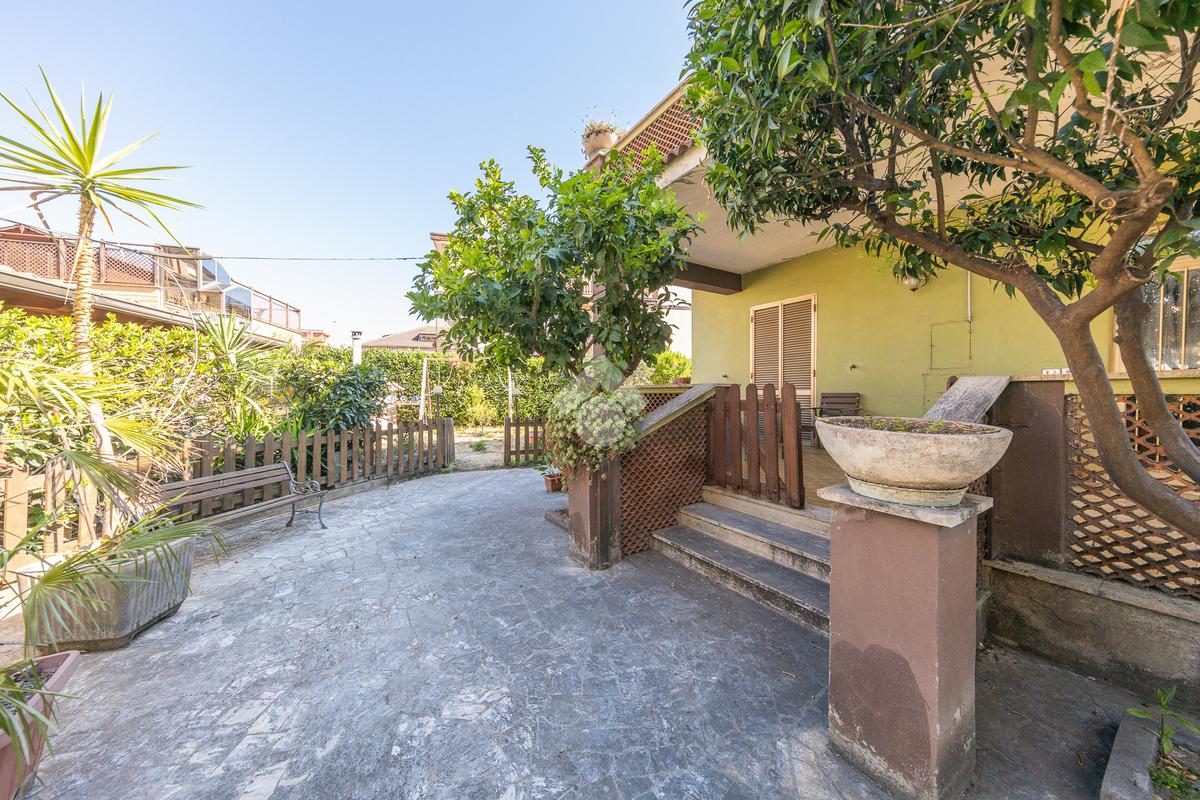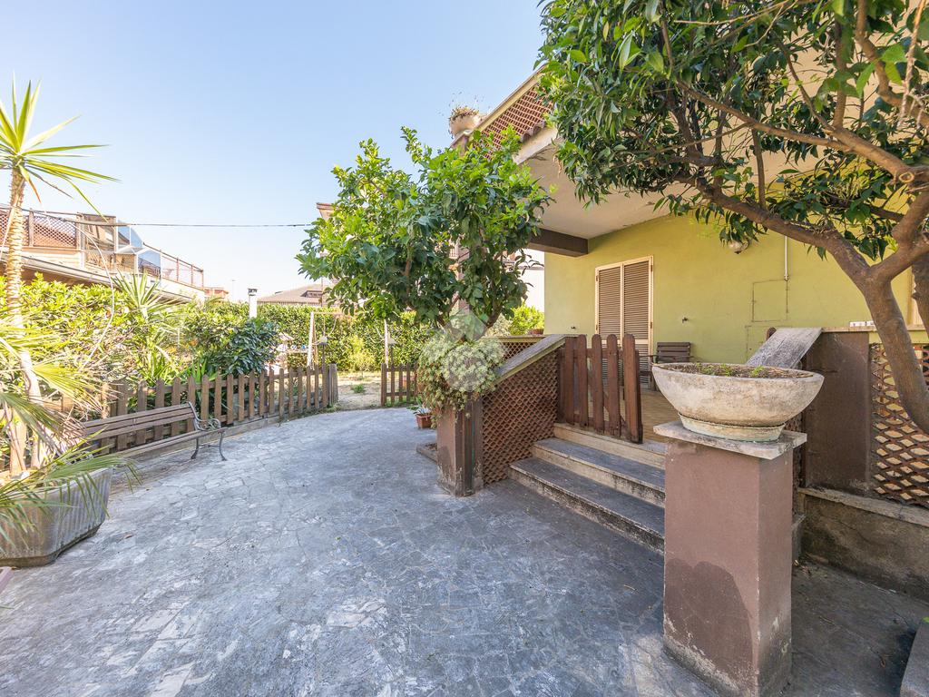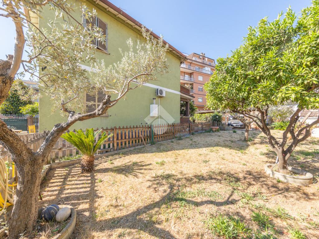 L'esterno della villa è altrettanto affascinante, con un grande giardino di 650 mq che rappresenta un vero e proprio angolo di paradiso. Questo spazio verde è perfetto per attività all'aperto, giardinaggio, o semplicemente per rilassarsi e godersi la tranquillità. Inoltre, la proprietà dispone di una cantina al piano seminterrato, ideale per riporre ogni tipo di oggetto o utensili.
