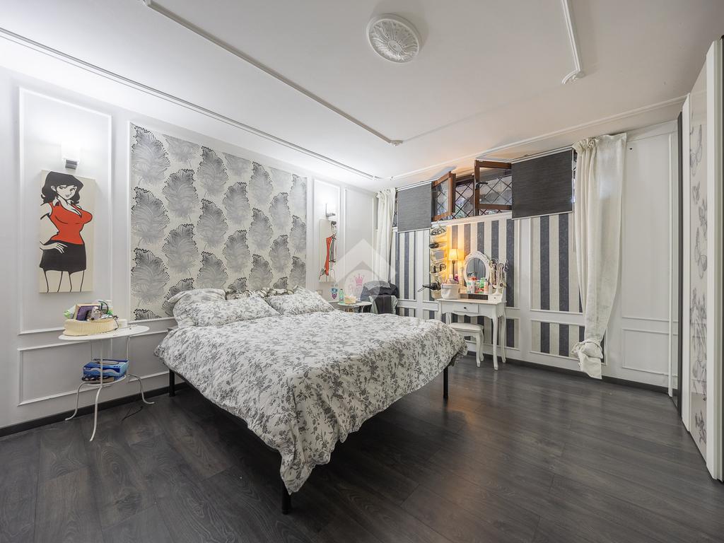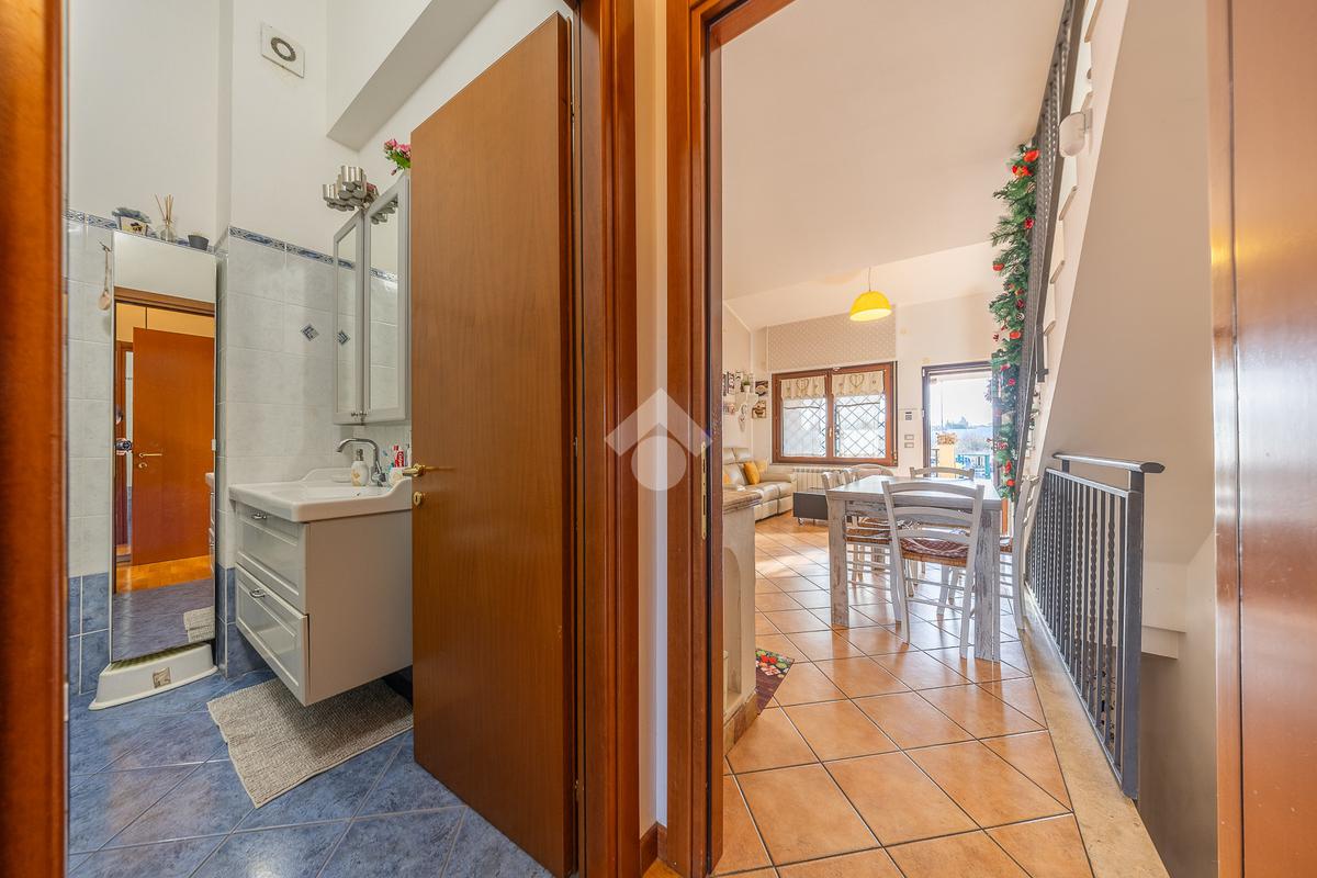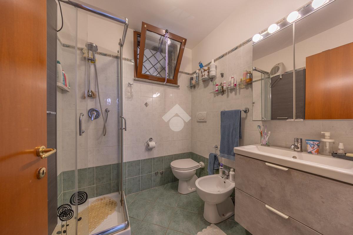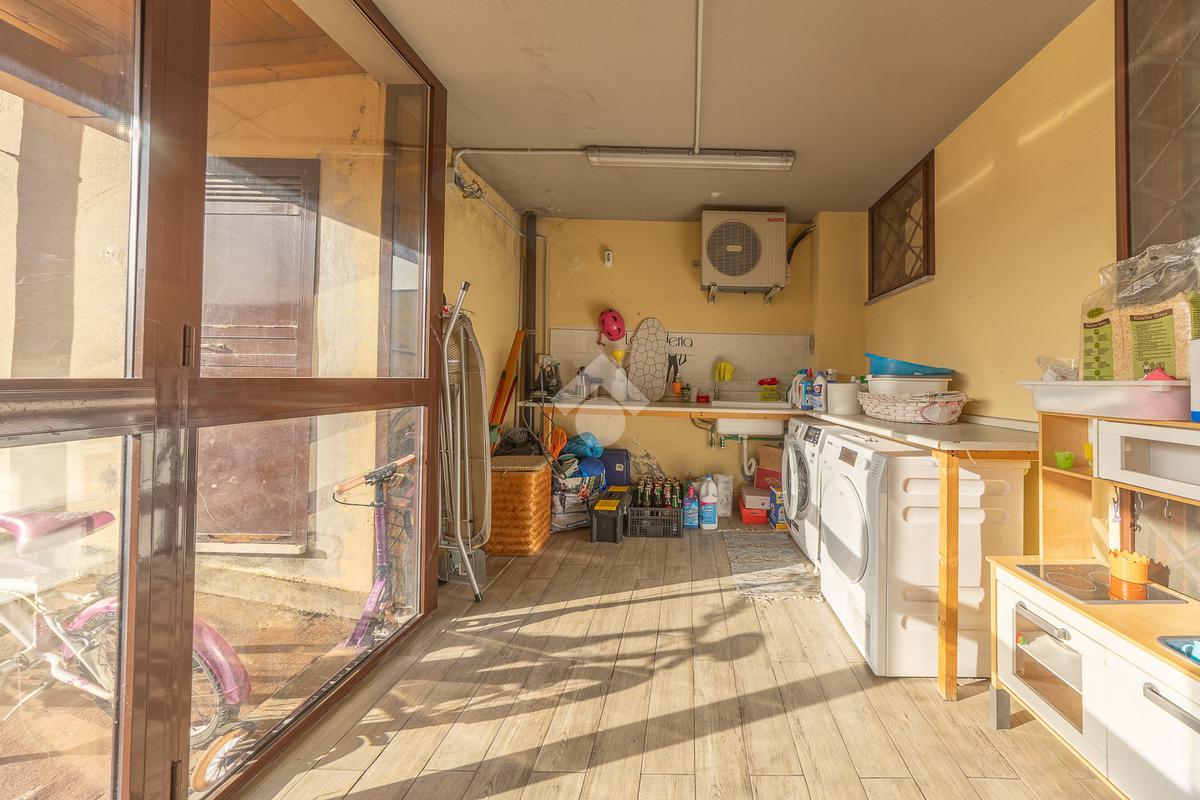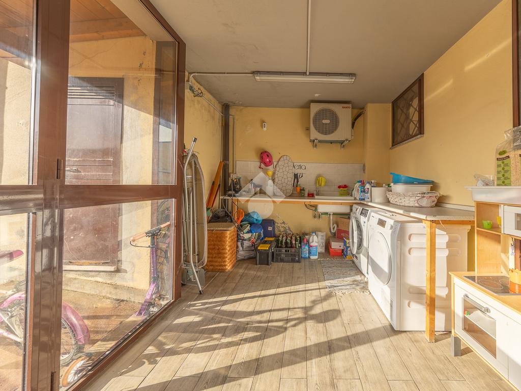 Il piano inferiore ospita due stanze, di cui una matrimoniale, un bagno finestrato con doccia, una funzionale zona lavanderia e un pratico ripostiglio.