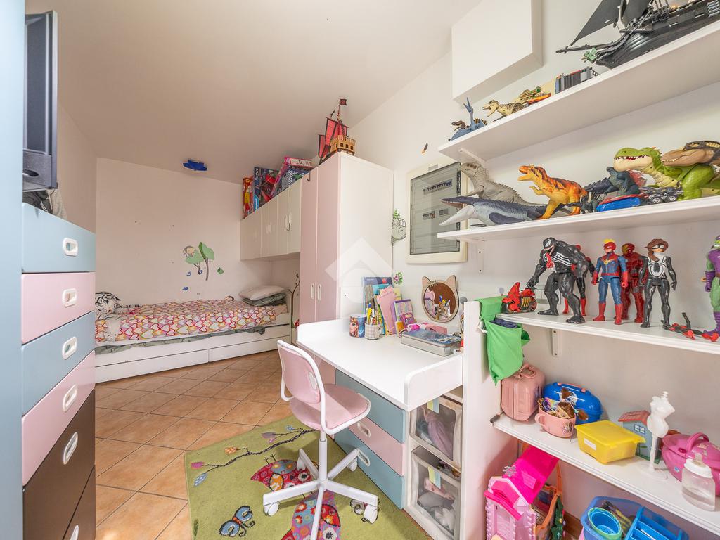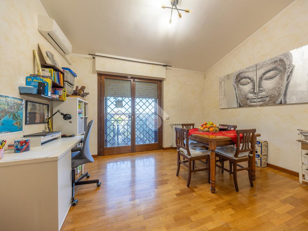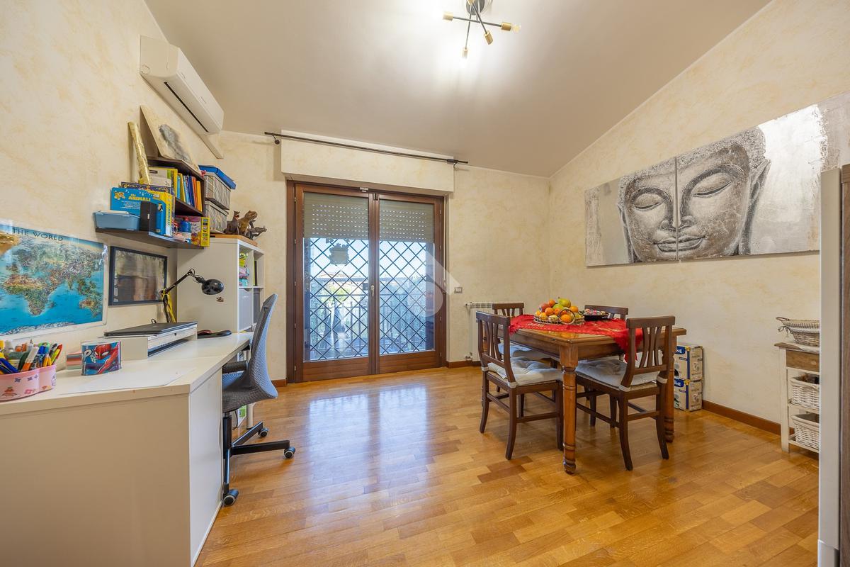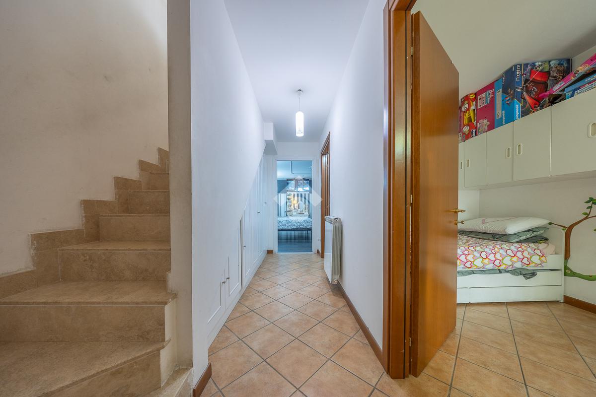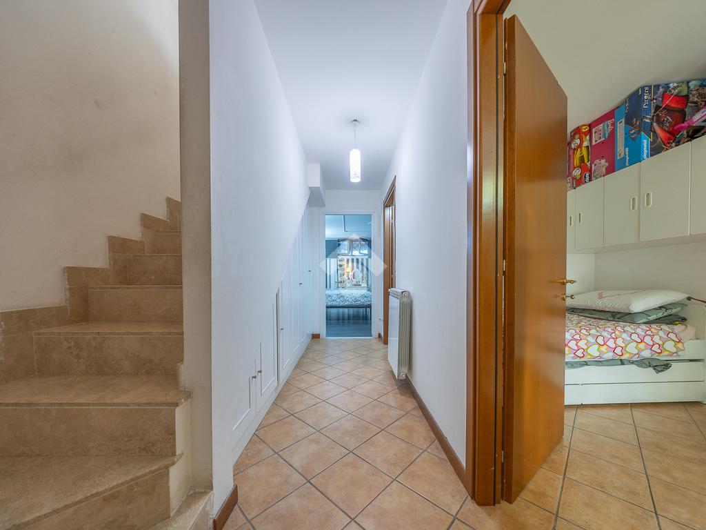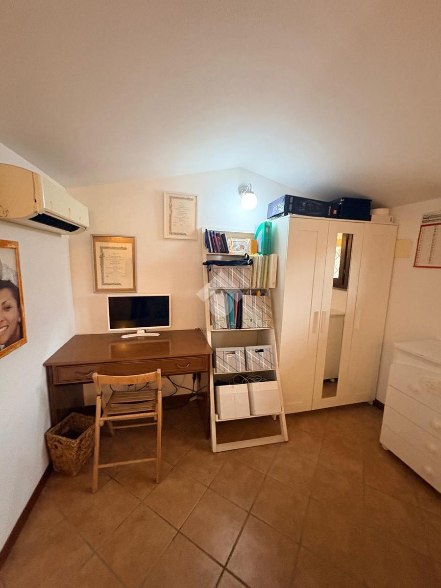 Salendo al piano superiore si accede a una comoda stanza mansardata, versatile e adatta a diversi utilizzi, come studio o ulteriore zona notte.