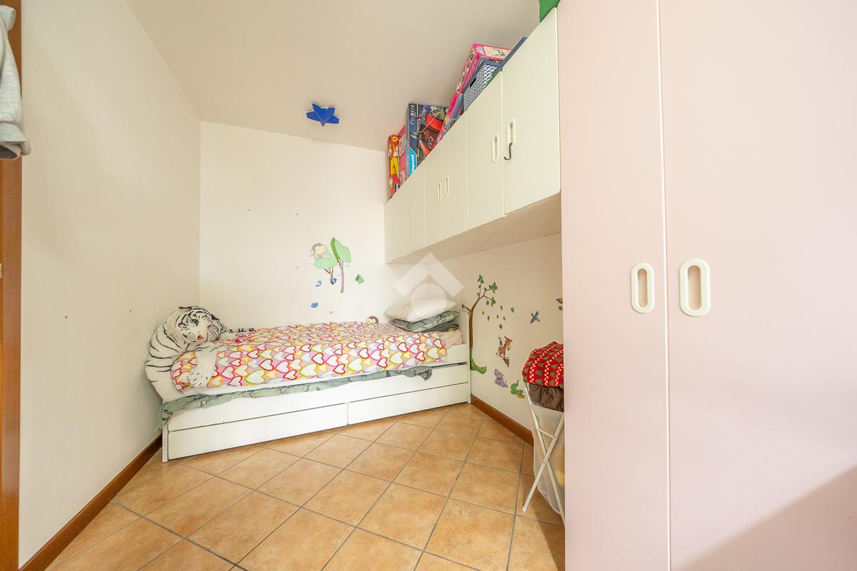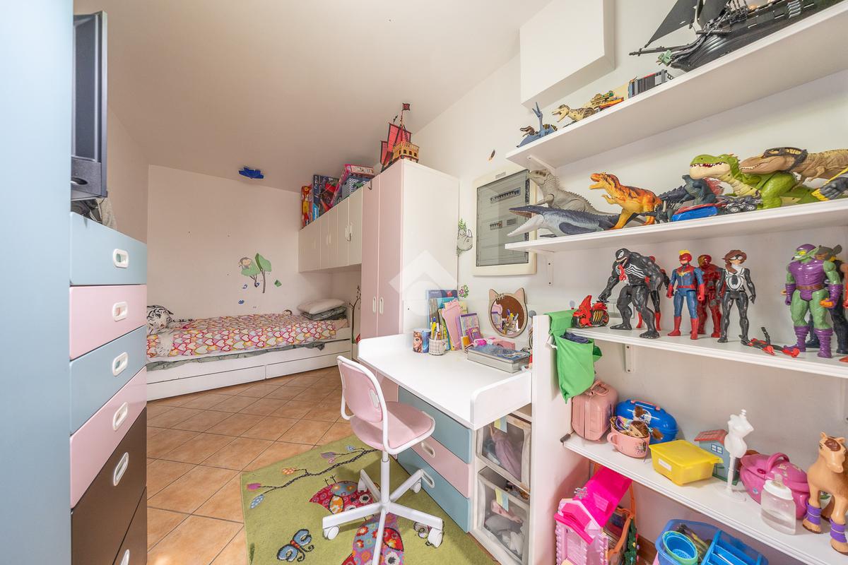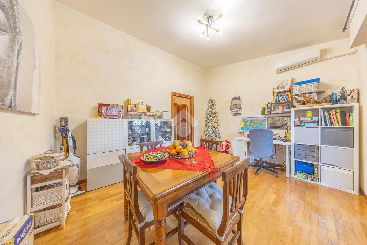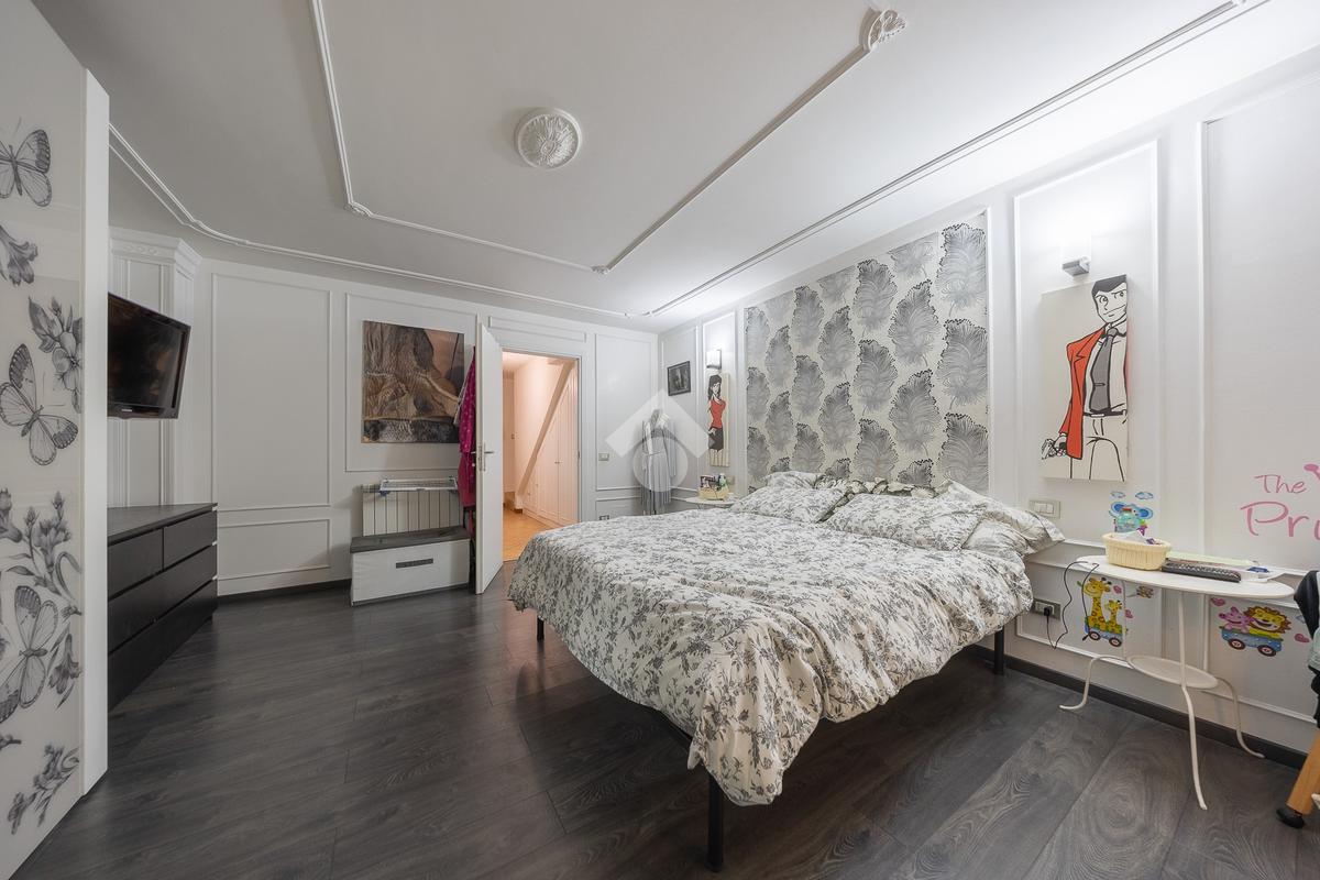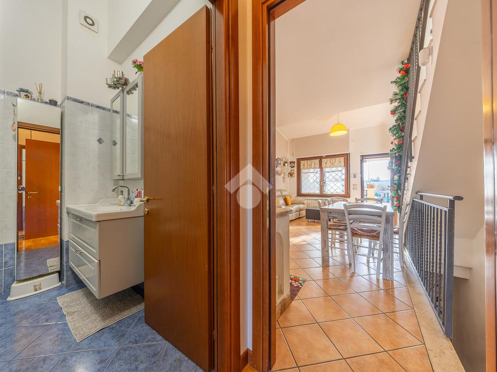 Salendo al piano superiore si accede a una comoda stanza mansardata, versatile e adatta a diversi utilizzi, come studio o ulteriore zona notte.